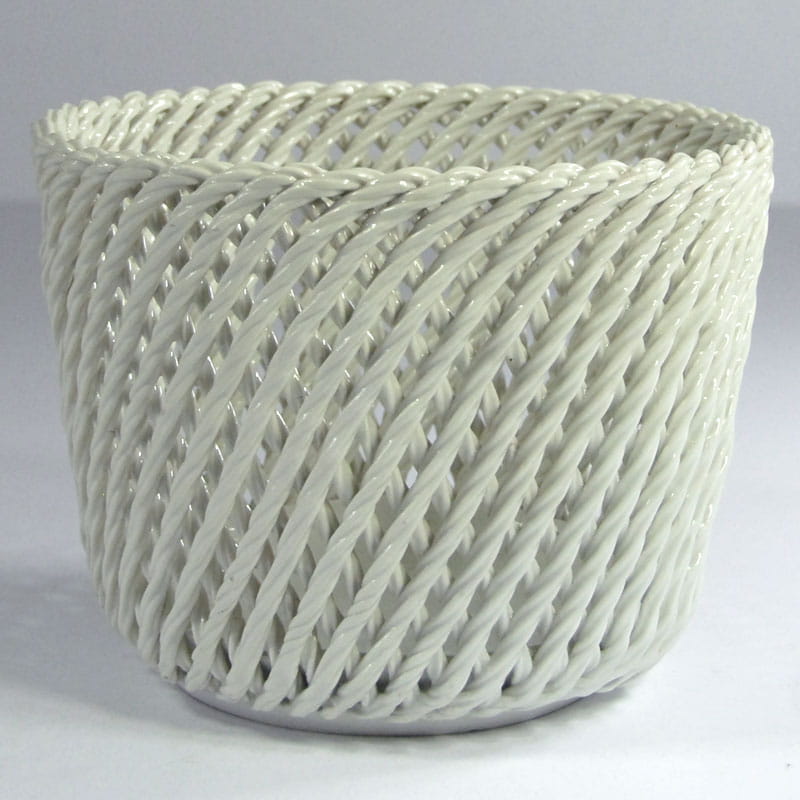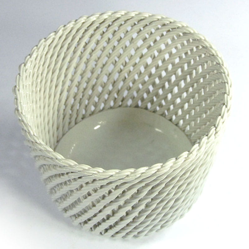 Duża, ażurowa, ręcznie robiona osłona na doniczkę z ceramiki szkliwionej w delikatnym kremowym kolorze. Pochodzi z Włoch. Przedmiot vintage zachowany w bardzo dobrym stanie. Średnica: 22 cm. Wysokość: 16 cm.