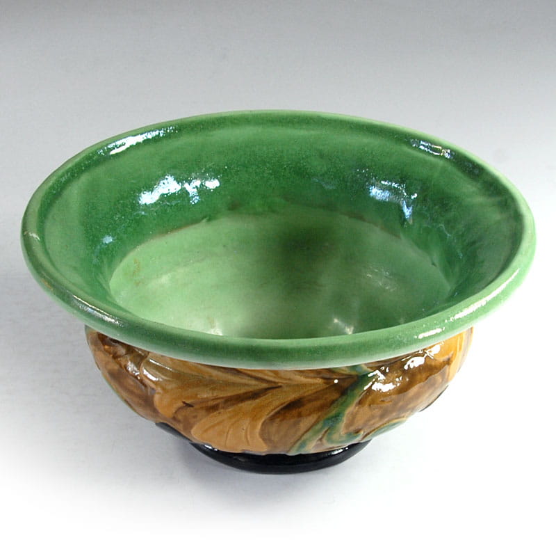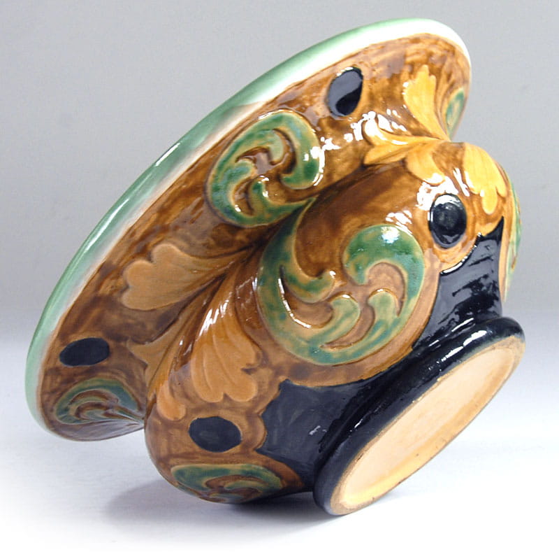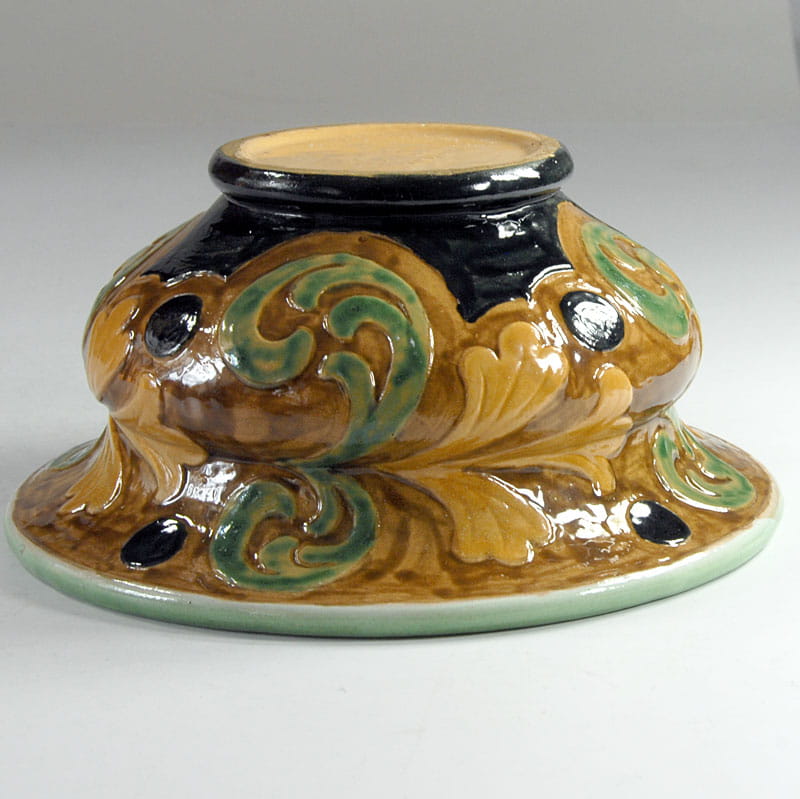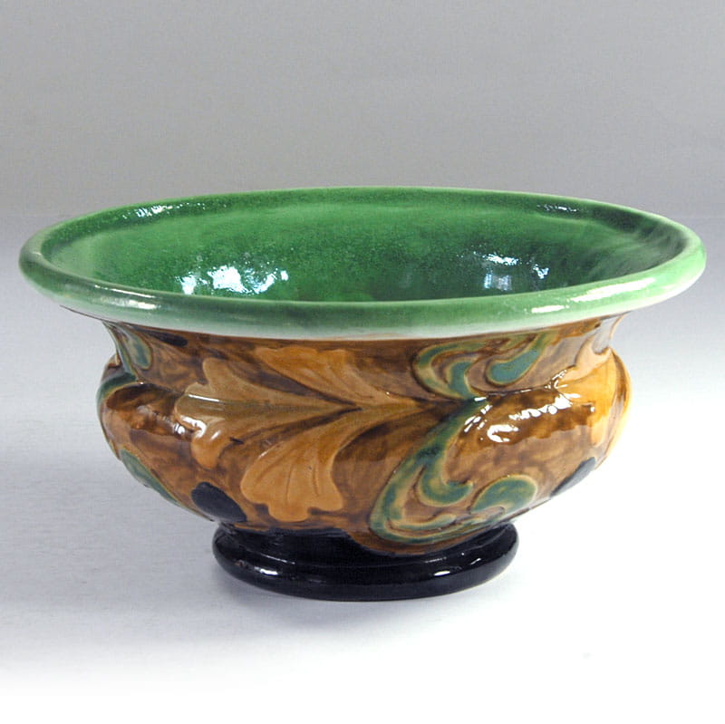 Szkliwione naczynie ceramiczne zaprojektowane i wykonane w Belgii w Faïencerie De Louvain w latach pięćdziesiątych XX wieku. Bardzo dobry stan zachowania z niewielkimi śladami używania. Wysokość: 11 cm. Średnica góry: 23 cm. Średnica podstawy: 10 cm.
