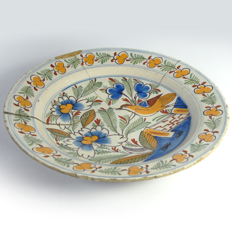 Kolorowy talerz fajansowy Delft, XVIII/XIX w.