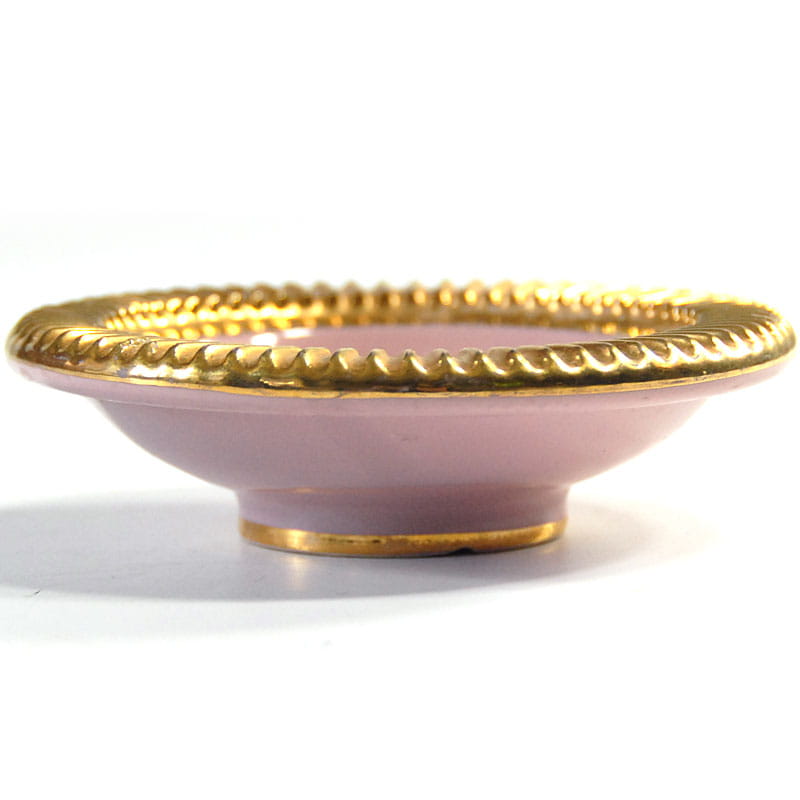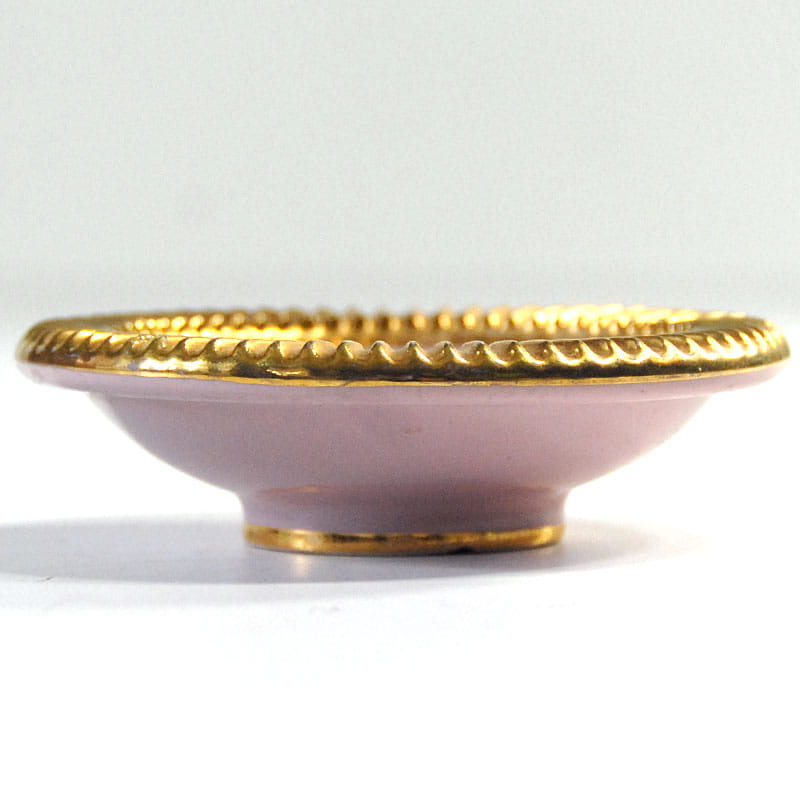 Mała włoska paterka ceramiczna szkliwiona i złocona. Zaprojektowany prawdopodobnie przez Italo Casini dla Fiorentine Italy. Przedmiot vintage pochodzący z lat pięćdziesiątych XX wieku. Średnica: 12 cm. Wysokość: 3,5 cm.