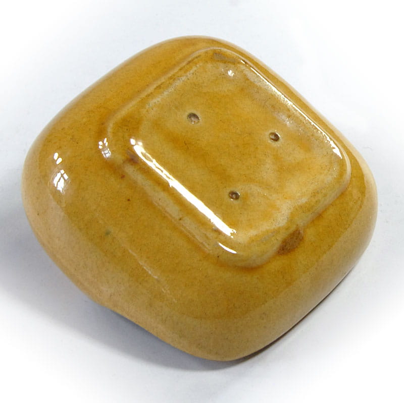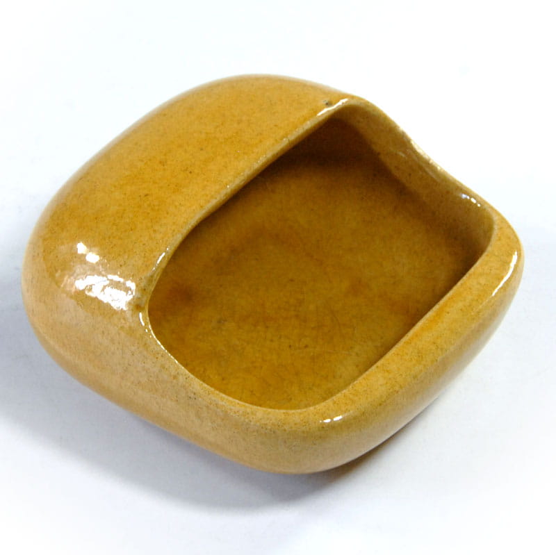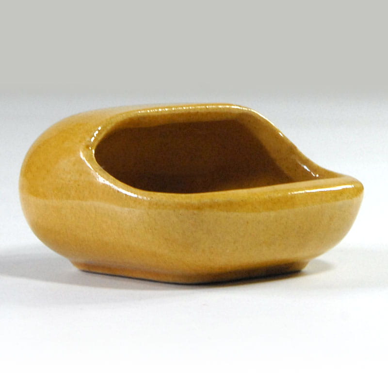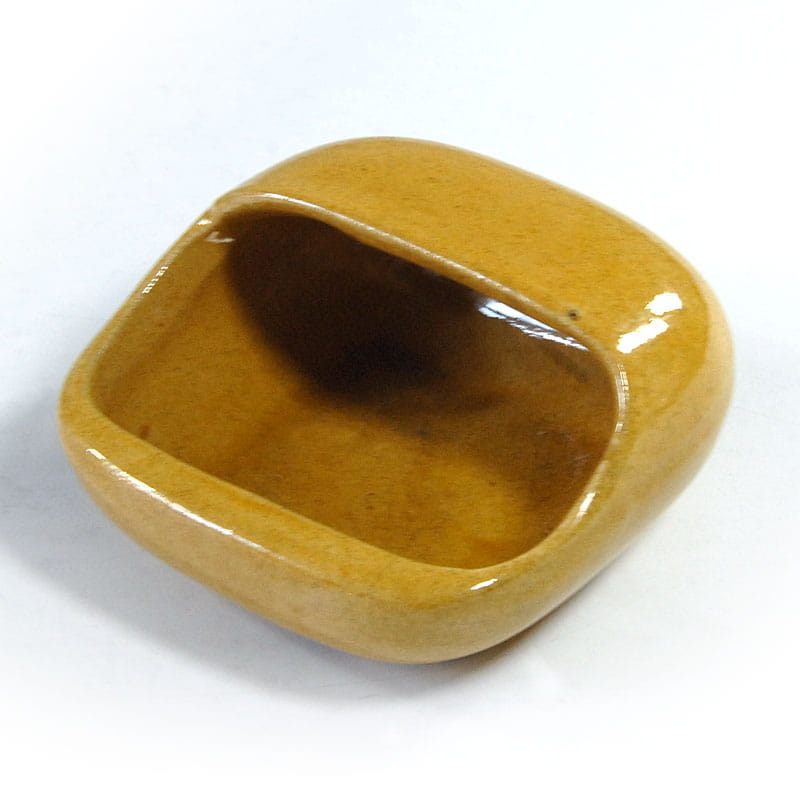Mała, dekoracyjna paterka stołowa zrobiona ze szkliwionej ceramiki. Została zaprojektowana w stylistyce Space Age. Pochodzi z lat siedemdziesiątych XX wieku. achowana jest w bardzo dobrym stanie. Wymiary: 5 x 9 x 9 cm.