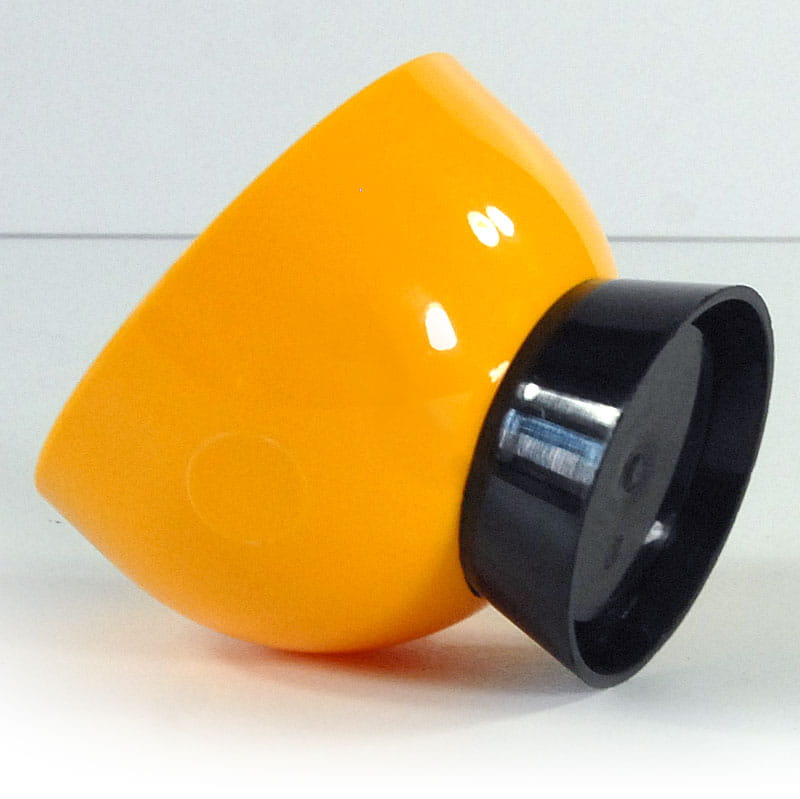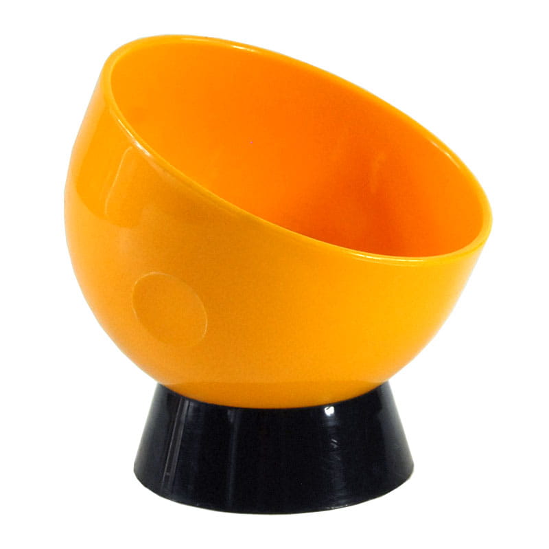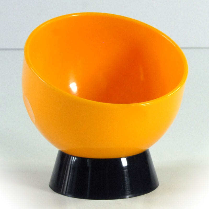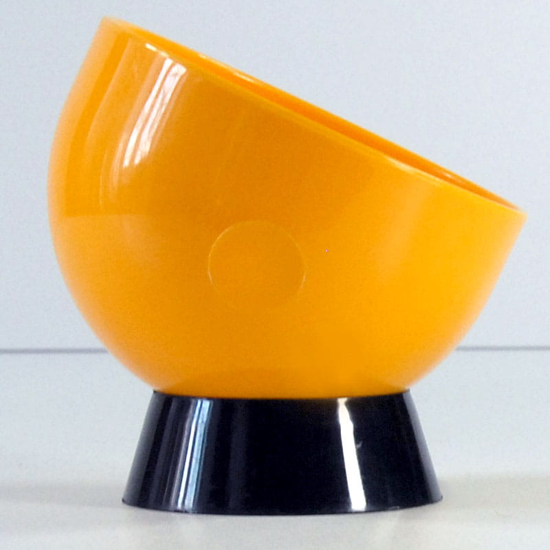 Mały pojemnik, miska zaprojektowany w stylistyce Space Age. Zrobiony jest z lekkiego tworzywa sztucznego. Pochodzi z Włoch z lat siedemdziesiątych XX wieku. Zachowany w bardzo dobrym stanie z niewielkimi śladami używania głównie w postaci zarysowań powierzchni. Wymiary: 10 x 9 cm. Średnica podstawy: 6 cm.