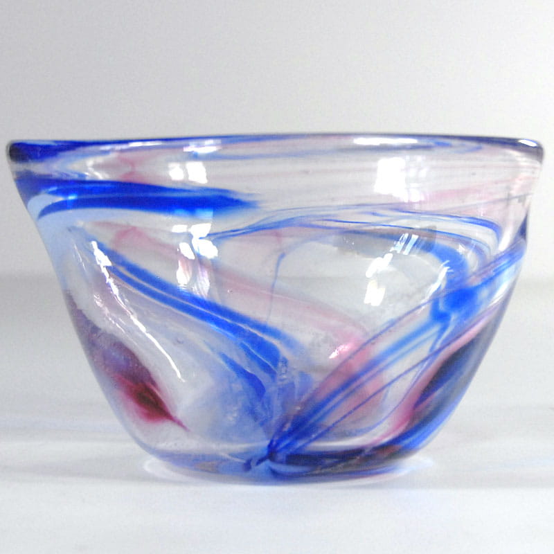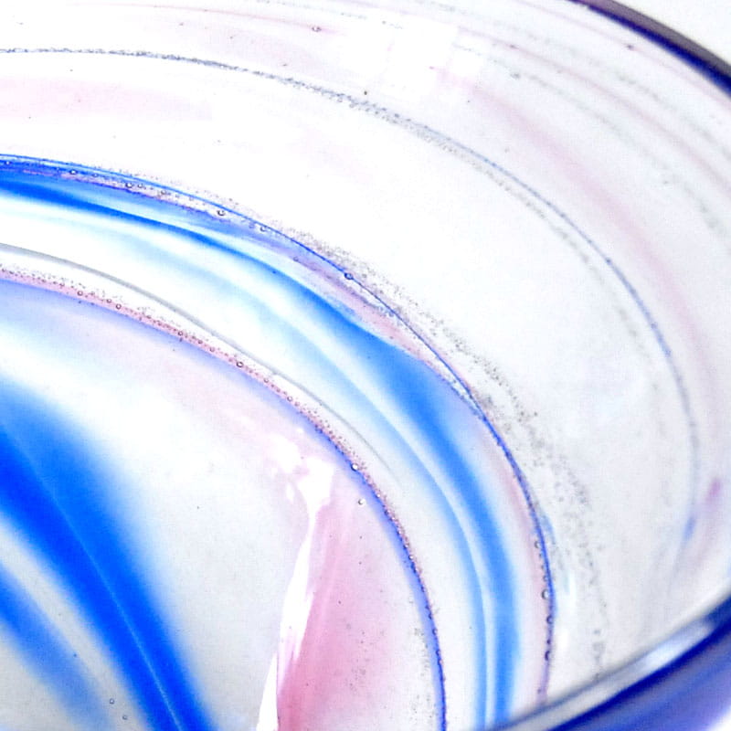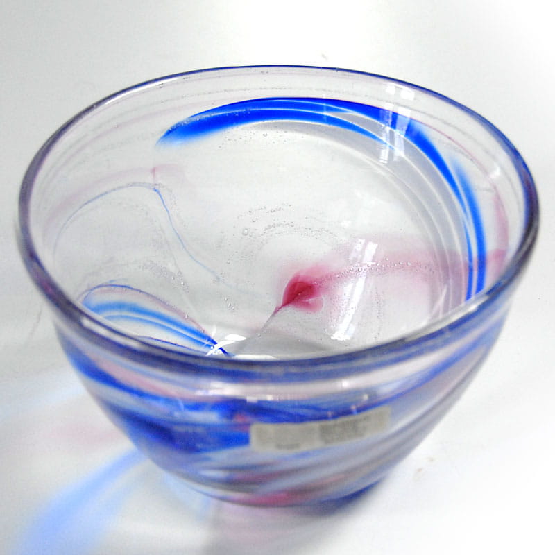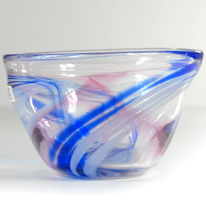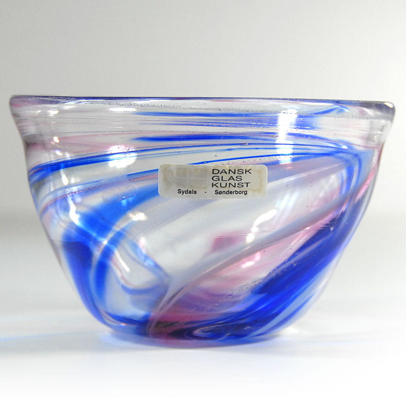 Dekoracyjna misa ze szkła artystycznego. Ręcznie zrobiona. Pochodzi z Danii z pracowni Dansk Glaskunst z lat dziewięćdziesiątych XX wieku. Sygnowana. Zachowana w bardzo dobrym stanie. Wymiary: 15 x 10 cm.