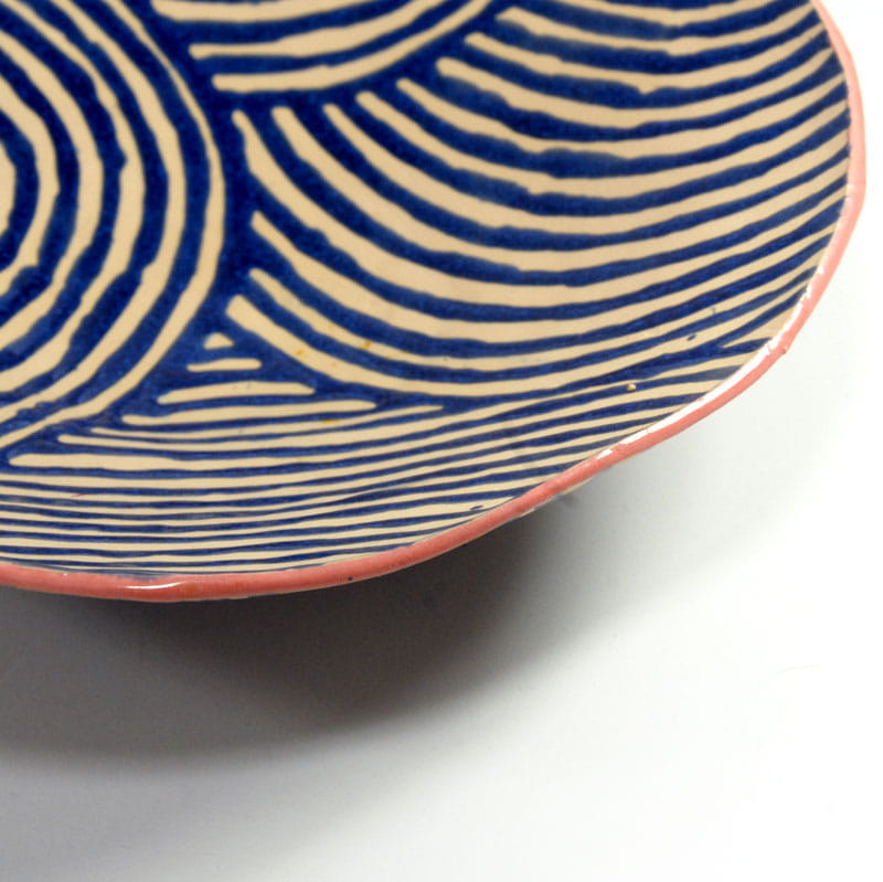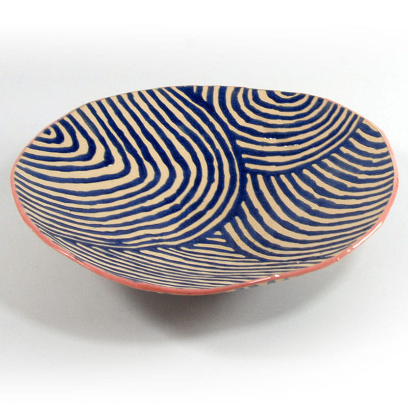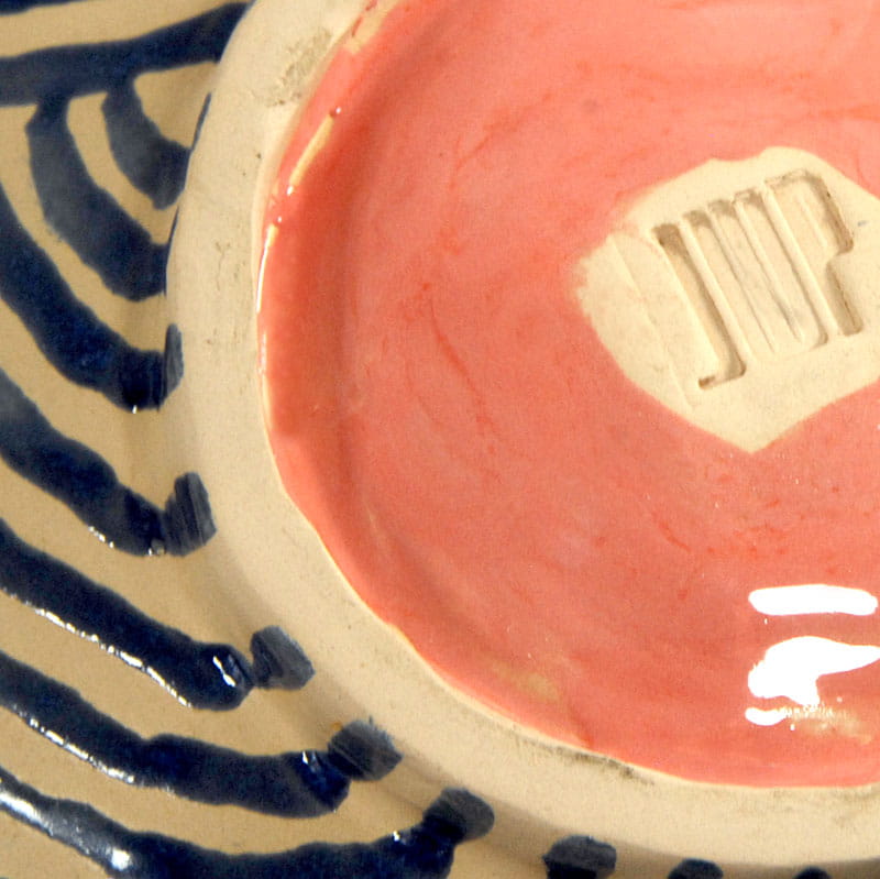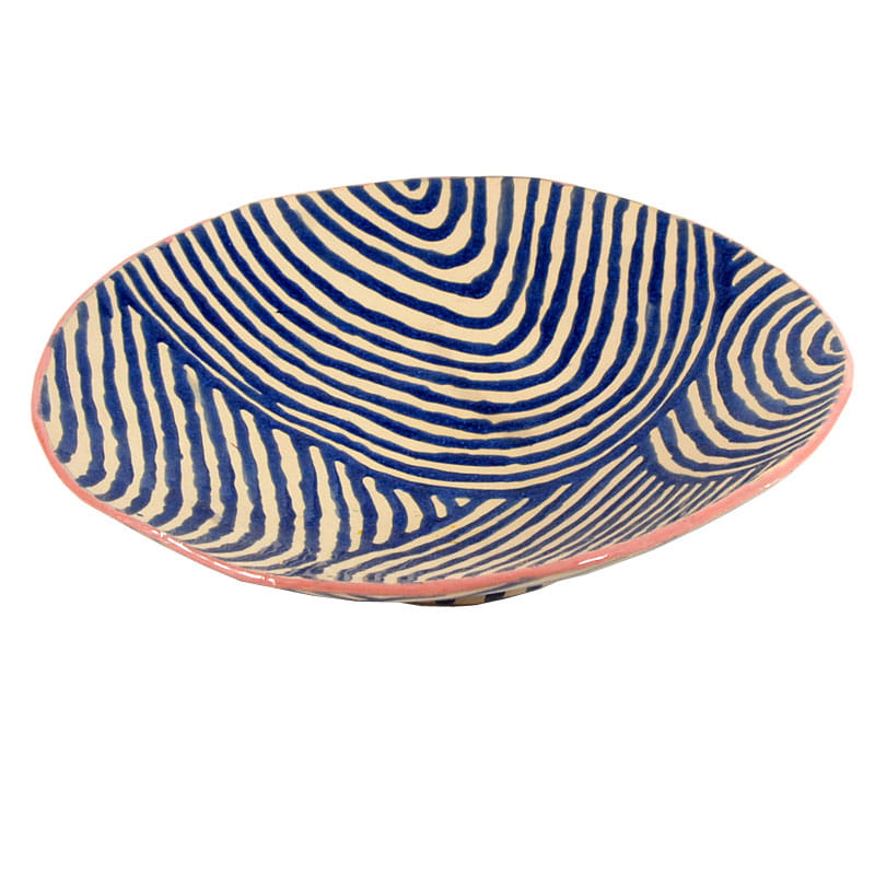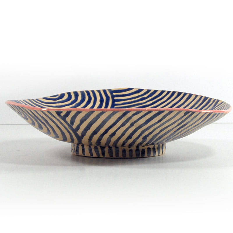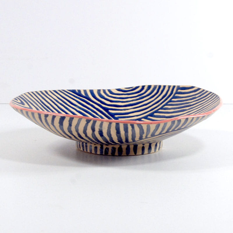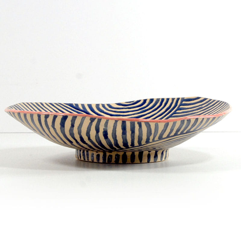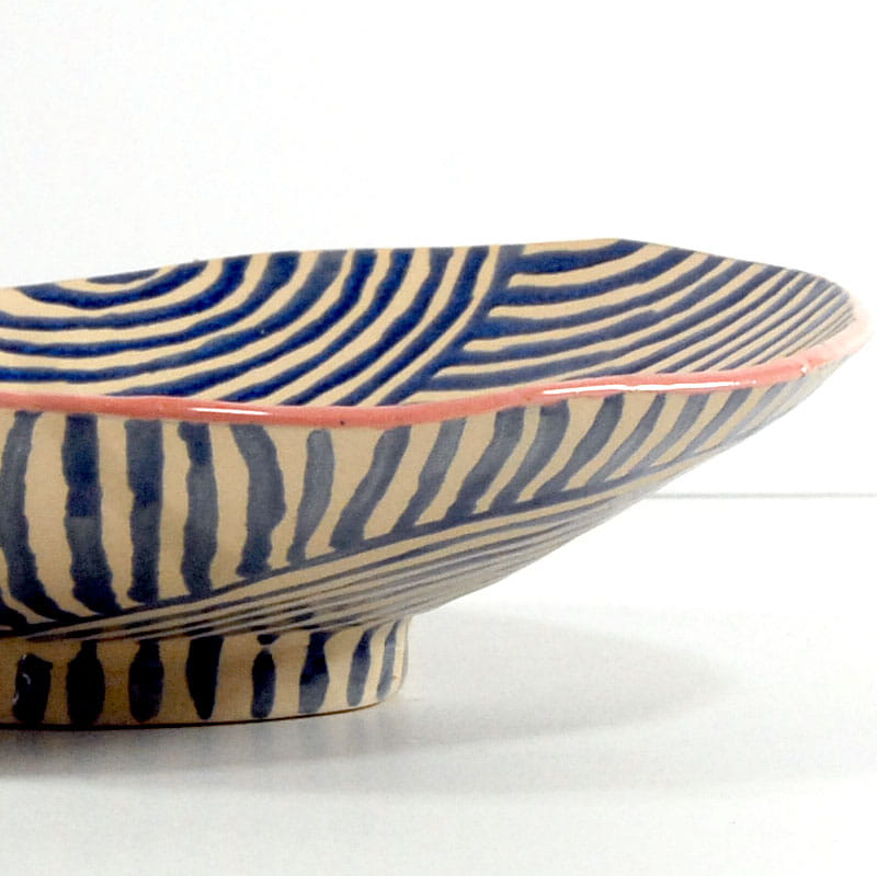 Dekoracyjna rzeźbiarska misa na stopce, zrobiona z ceramiki, malowana oraz szkliwiona. Ręcznie zrobiony przedmiot unikatowy. Artystyczna ceramika autorska: Joanna Wysocka. Sygnowany: JWP. Wymiary zewnętrzne: 24 x 6 cm.