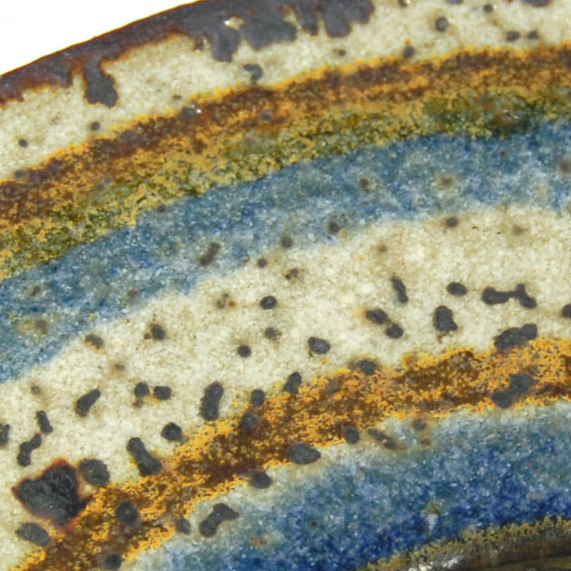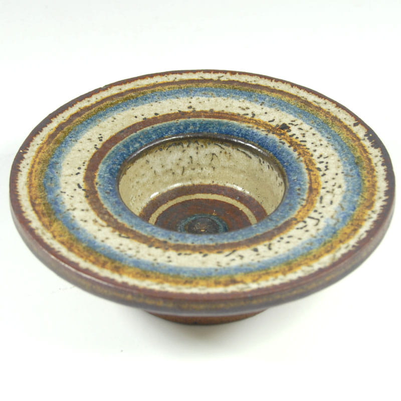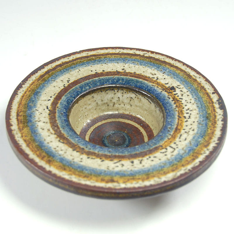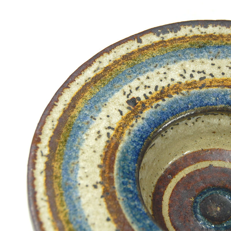 Dekoracyjna, masywna misa/patera ceramiczna pochodząca z Danii z lat sześćdziesiątych XX wieku. Zdobiona bardzo efektownym szkliwem w kilku kolorach. Sygnowana. Zachowana w bardzo dobrym stanie. Średnica: 21,5 cm. Wysokość: 6 cm.