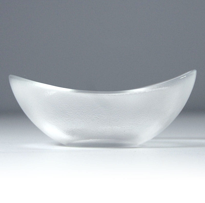Nieduża miseczka ze szkła bezbarwnego z dekoracyjną fakturą. Piękny niebieski kolor. Pochodzi z renomowanej duńskiej wytwórni Holmegaard. Lata siedemdziesiąte XX wieku. Sygnowana. Wymiary: 13 x 10 x 5 cm.