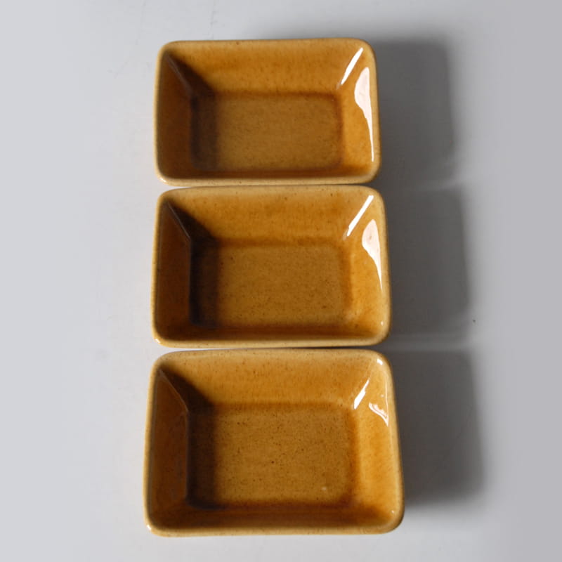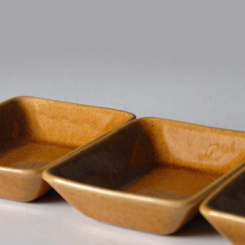 Komplet trzech dekoracyjnych miseczek ceramicznych. Szkliwione z połyskiem. Sygnowane: JIE Gantofta of Sweden 135. Oryginalne przedmioty vintage z lat siedemdziesiątych XX wieku. Wymiary: ok. 13 x 9,5 cm.