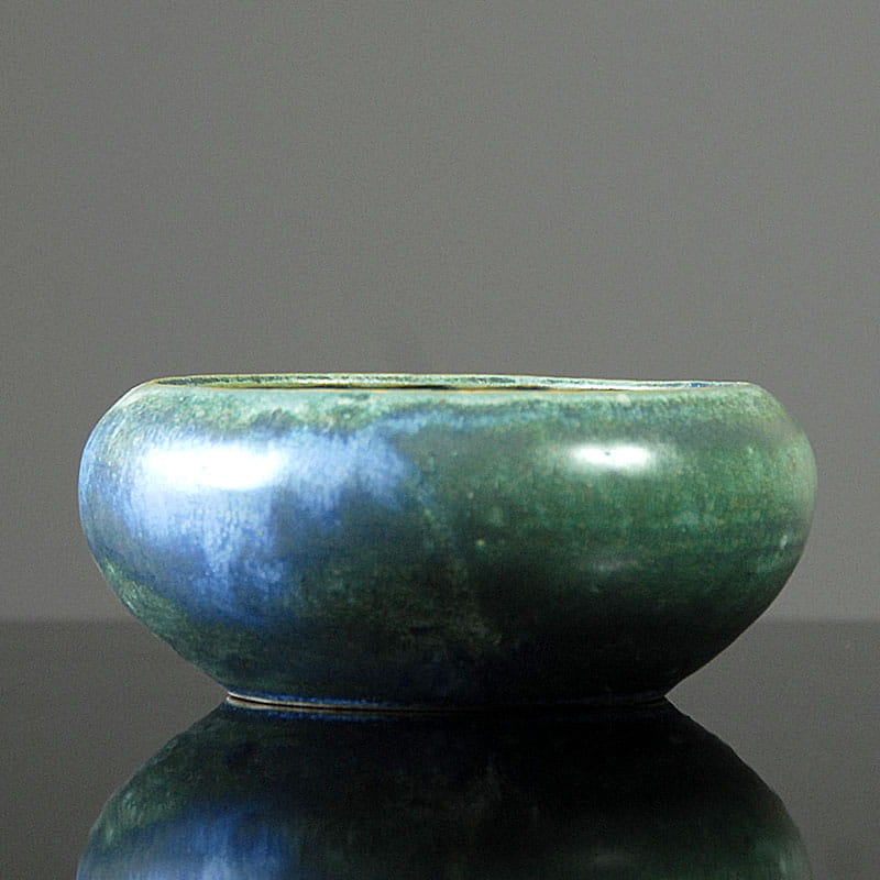 Niewielka, duńska misa ceramiczna. Minimalistyczna w formie ceramika, której ozdobą jest przepiękne szkliwo w kilku odcieniach błękitów i szarości. Patera sygnowane odręcznie przed wypaleniem. Przedmiot oryginalny z lat sześćdziesiątych XX wieku. Wysokość: 5cm. Średnica: 16 cm.