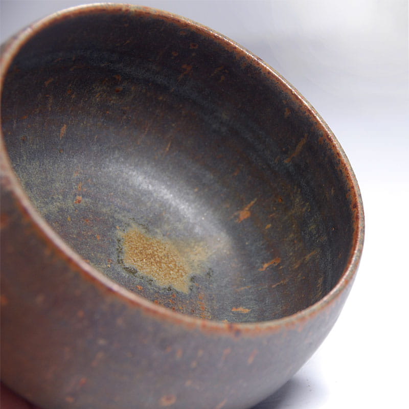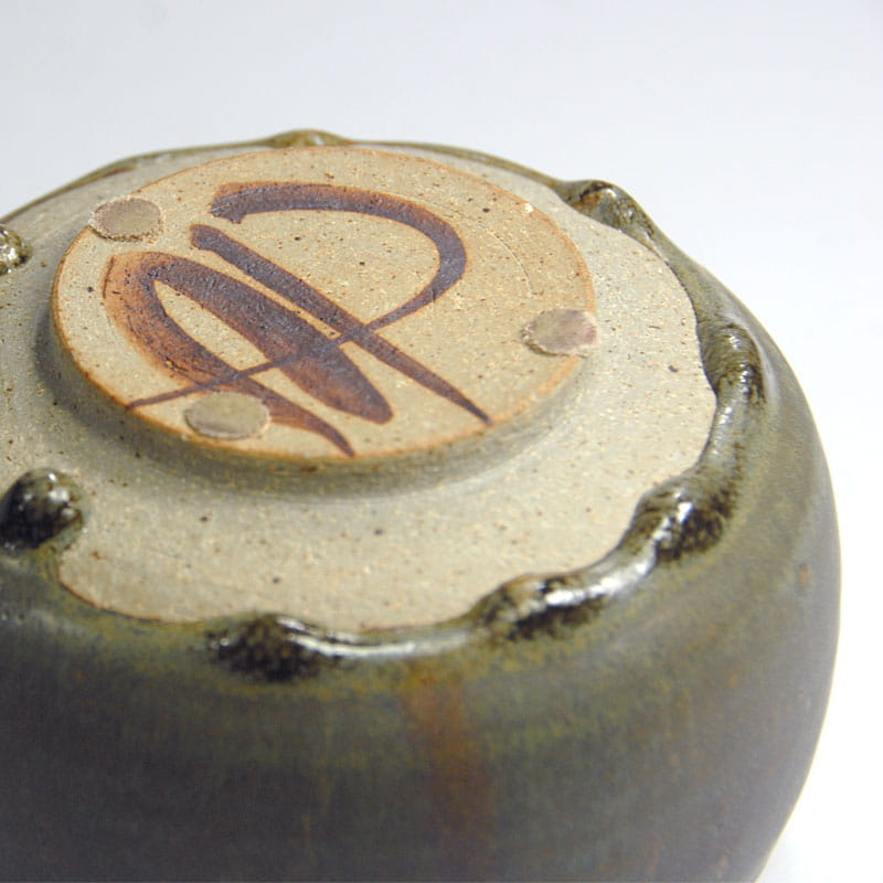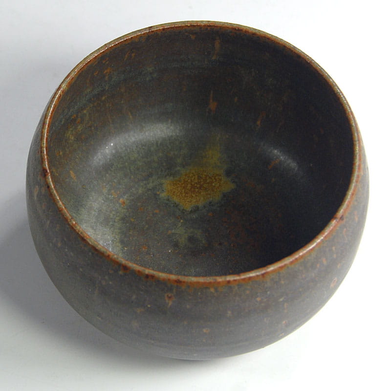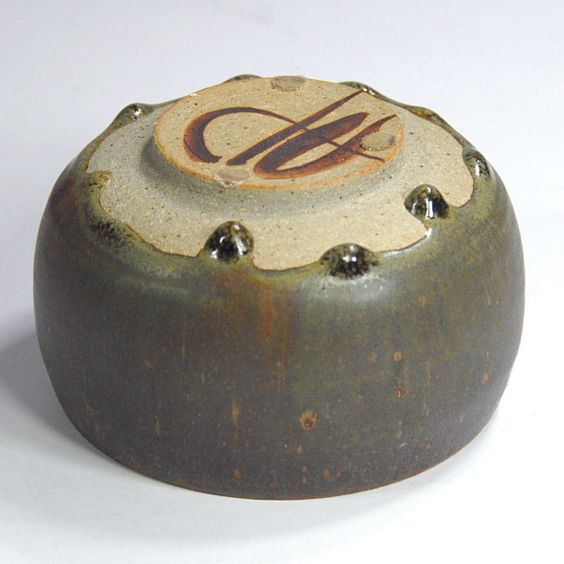Efektowna misa ceramiczna ręcznie zrobiona i szkliwiona. Pochodzi z autorskiej pracowni Anne & Peter Stougaard na duńskiej wyspie Bornholm. Sygnowana. Oryginalny przedmiot vintage pochodzący z lat sześćdziesiątych/siedemdziesiątych XX w. Średnica: 13,5 cm. Wysokość: 8 cm.