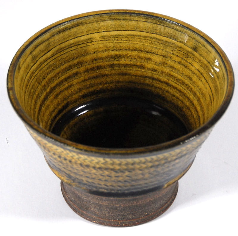 Szkliwione naczynie ceramiczne zaprojektowane i wykonane przez Nilsa Kahlera. Pochodzi z wytwórni Kähler (HAK) w Danii z lat sześćdziesiątych XX wiek. Wysokość: 11 cm. Średnica góry: 16 cm. Średnica podstawy: 9 cm.