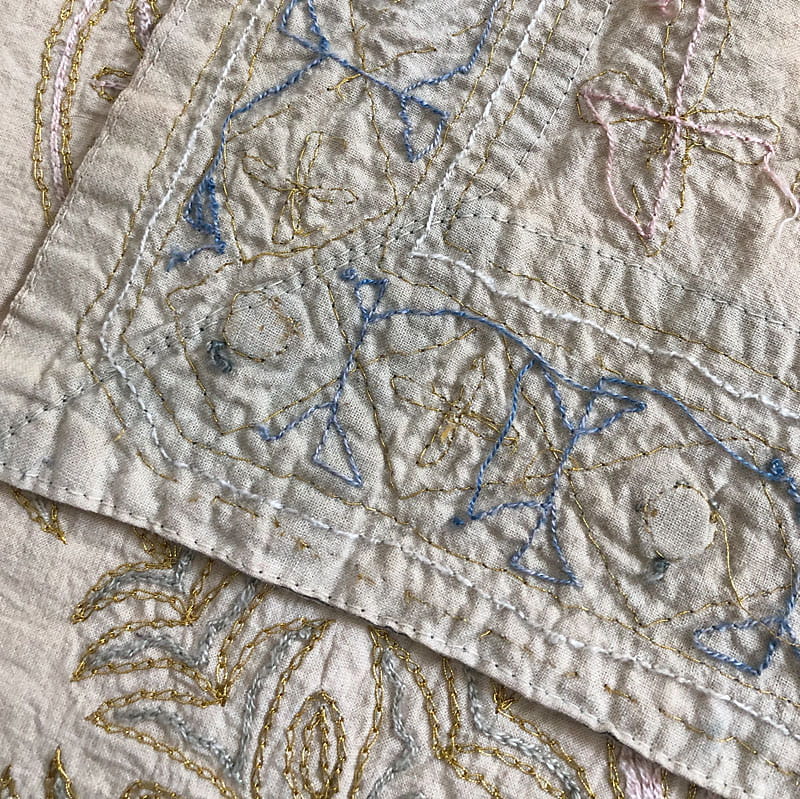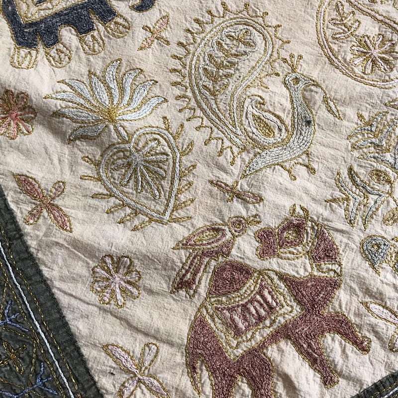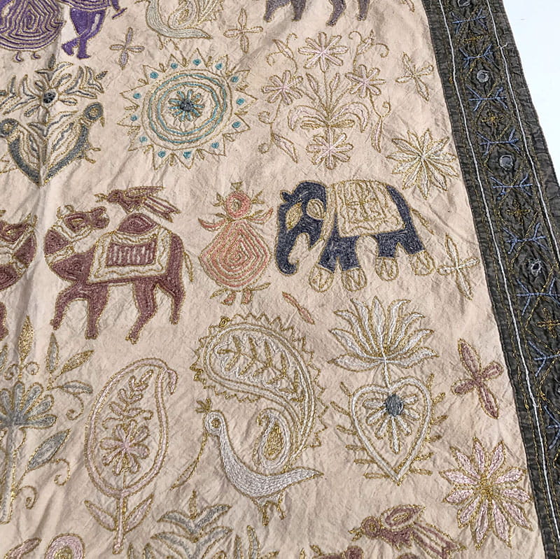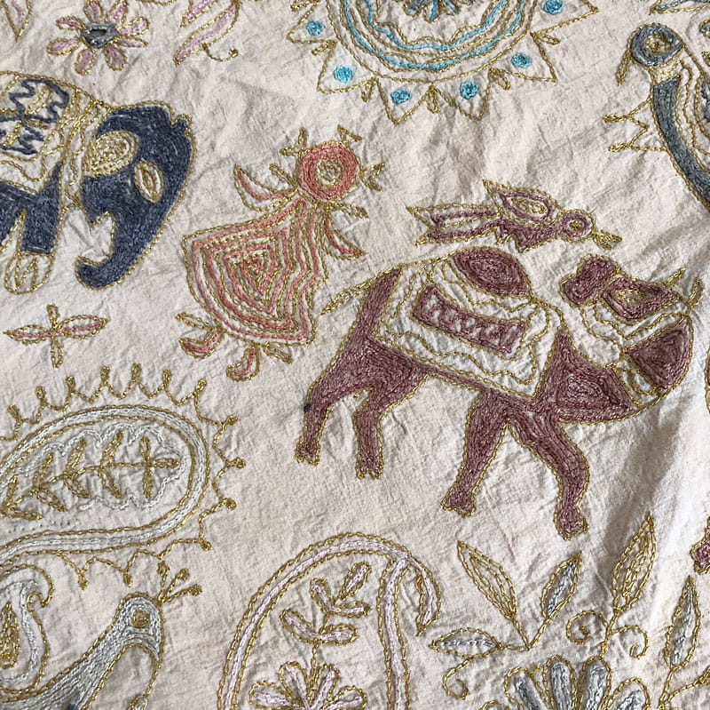 Orientalna, ręcznie haftowana tkanina dekoracyjna