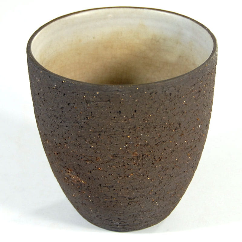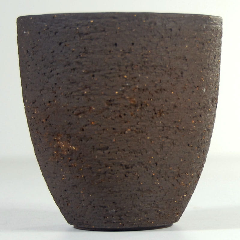 Mała osłonka na doniczkę zrobiona z surowego, brązowego szamotu. Szkliwiona wewnątrz. Pochodzi z Niemiec z lat dziewięćdziesiątych XX wieku. Wymiary: 11 x 10 cm.