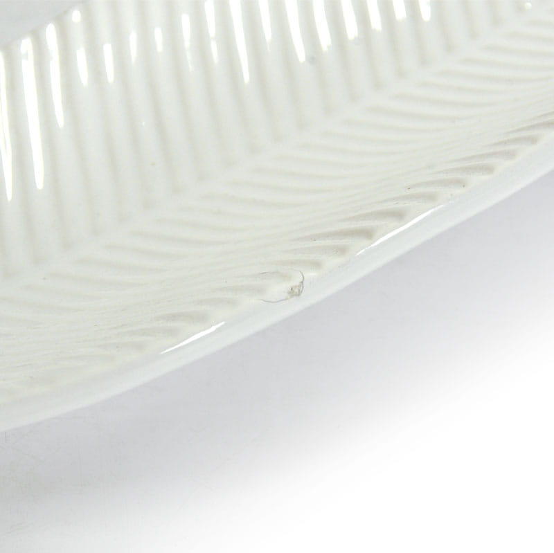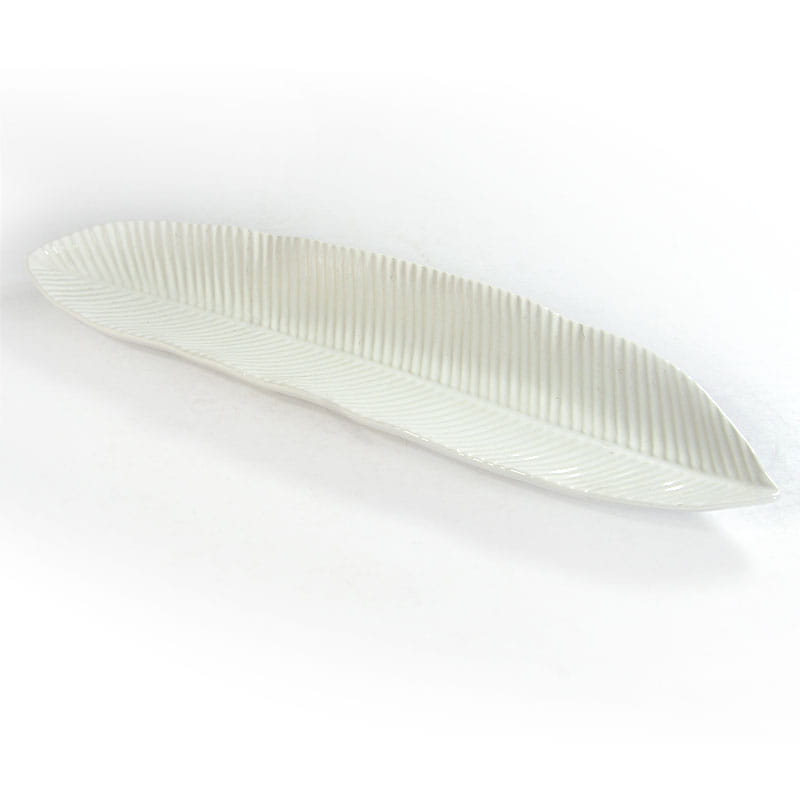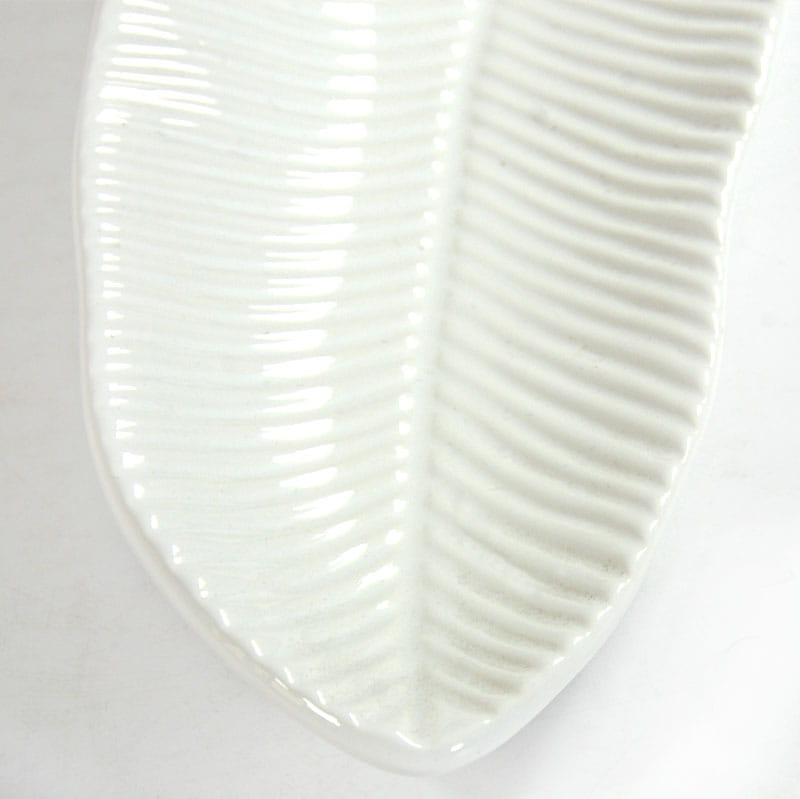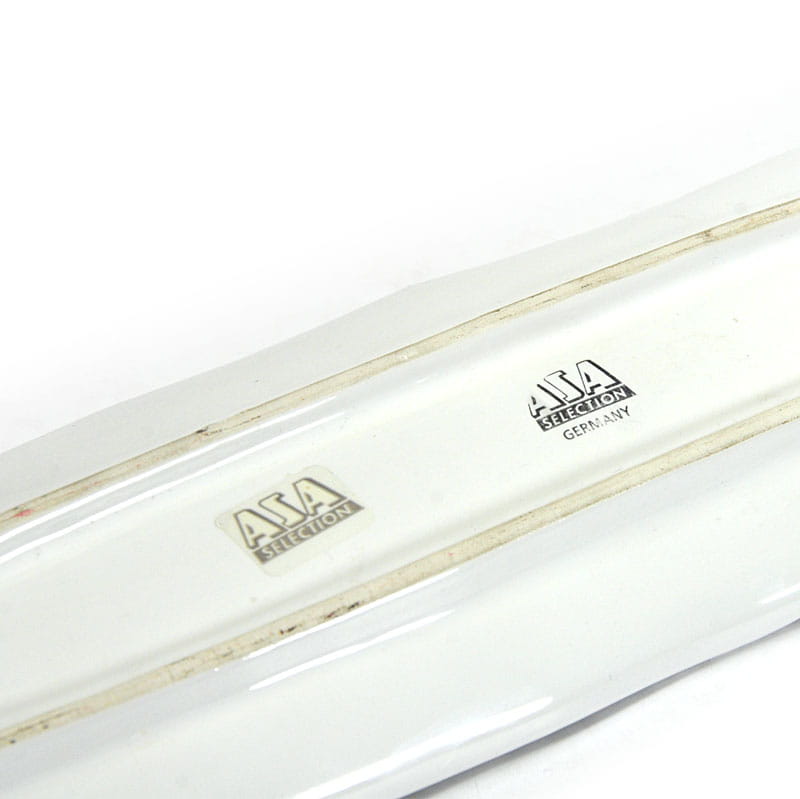 Dekoracyjna patera w kształcie stylizowanego liścia. Zaprojektowana i wyprodukowana w Niemczech w renomowanej wytwórni ceramiki Asa. Pochodzi z lat dziewięćdziesiątych XX wieku. Niewielka wada na krawędzi. Wymiary: 38 x 10 x 3 cm.