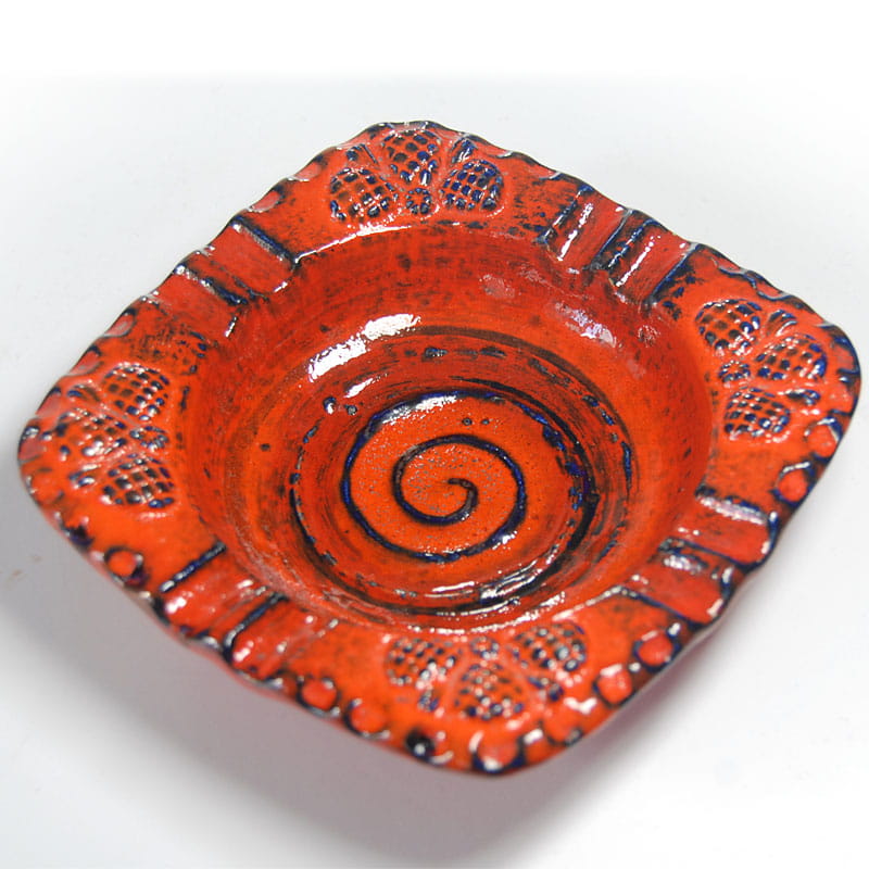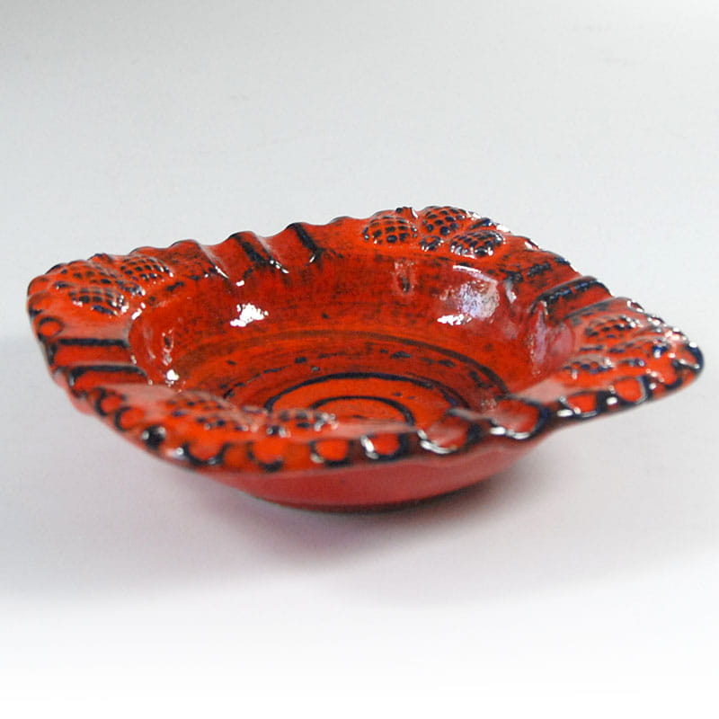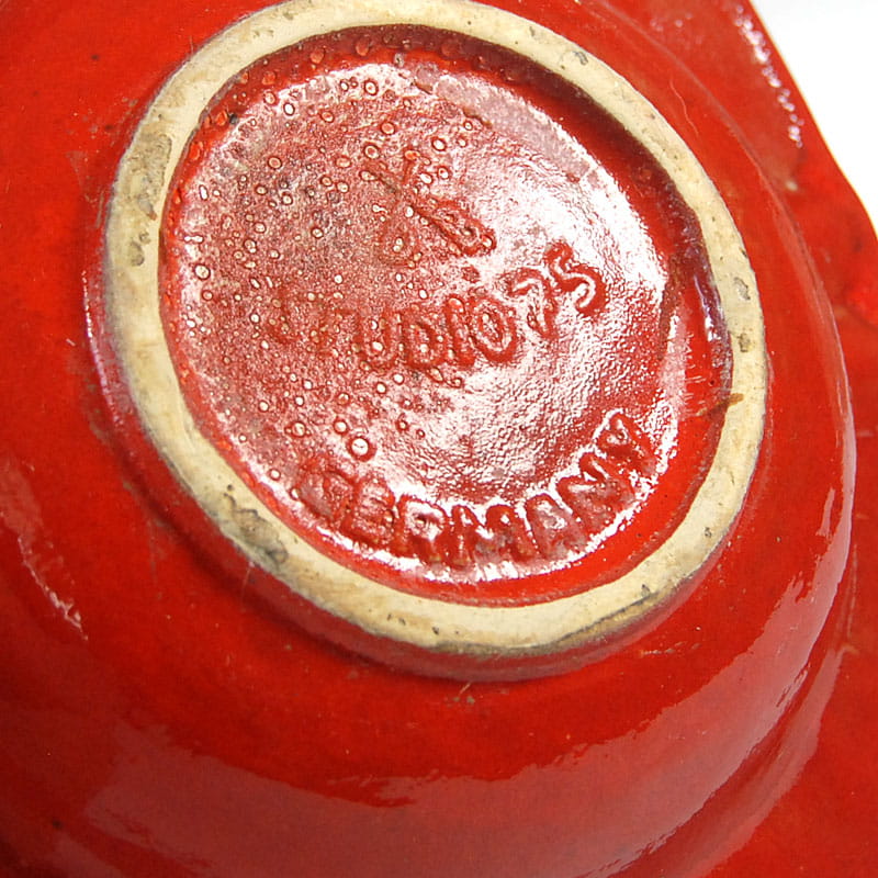 Popielnica Studio 75 zrobiona z ceramiki szkliwionej w typie Fat Lava. Pochodzi z wytwórni Dumler & Breiden w Niemczech w lat siedemdziesiątych XX wieku. Sygnowana. Zachowana w bardzo dobrym stanie. Wymiary: 18 x 18 x 5 cm.