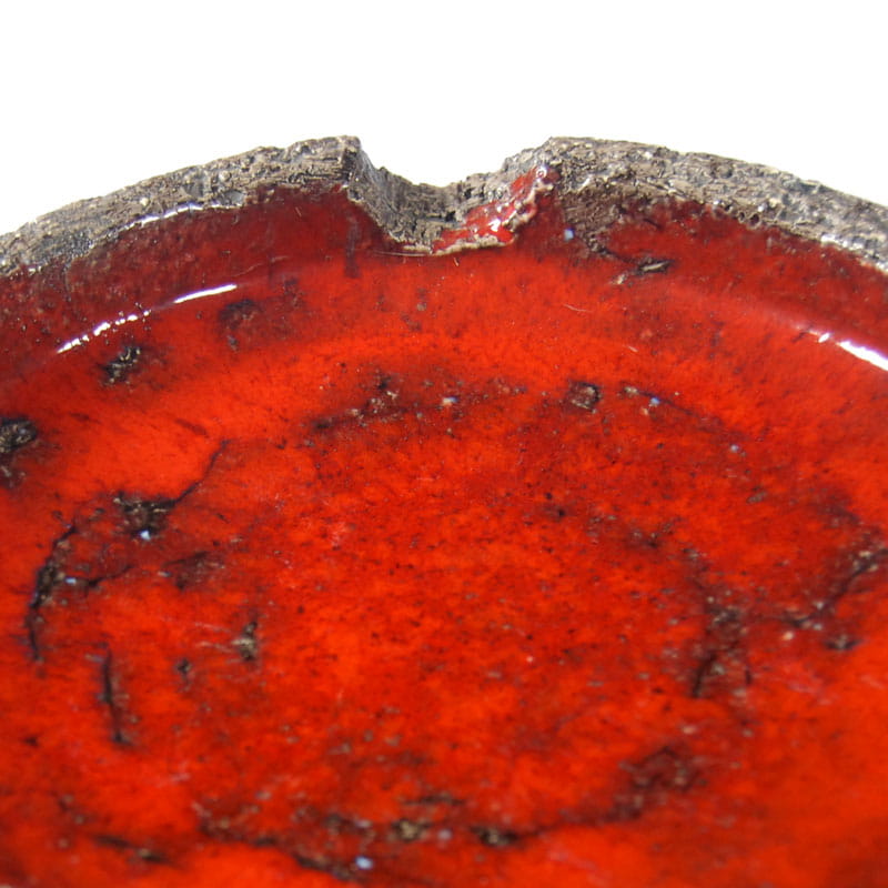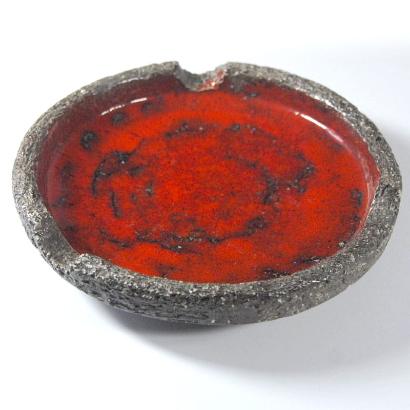 Efektowna popielnica zrobiona ze szkliwionej ceramiki autorstwa Jana van Erp. Piękny, energetyczny pomarańczowo czerwony kolor. Patera pochodzi z Holandii z lat siedemdziesiątych wieku. Średnica 21 cm. Wysokość: 4 cm.