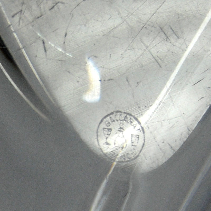 Masywna, bardzo dekoracyjna popielnica stołowa, zrobiona z wysokiej jakości szkła kryształowego. Pochodzi z francuskiej wytwórni Baccarat, z lat siedemdziesiątych XX wieku. Sygnowana. Bardzo dobry stan zachowania z niewielkimi śladami używania głównie w postaci delikatnych zarysowań powierzchni. Wymiary: 18 x 18 x 18 x 6 cm.