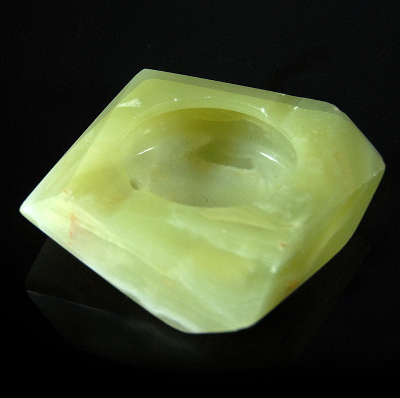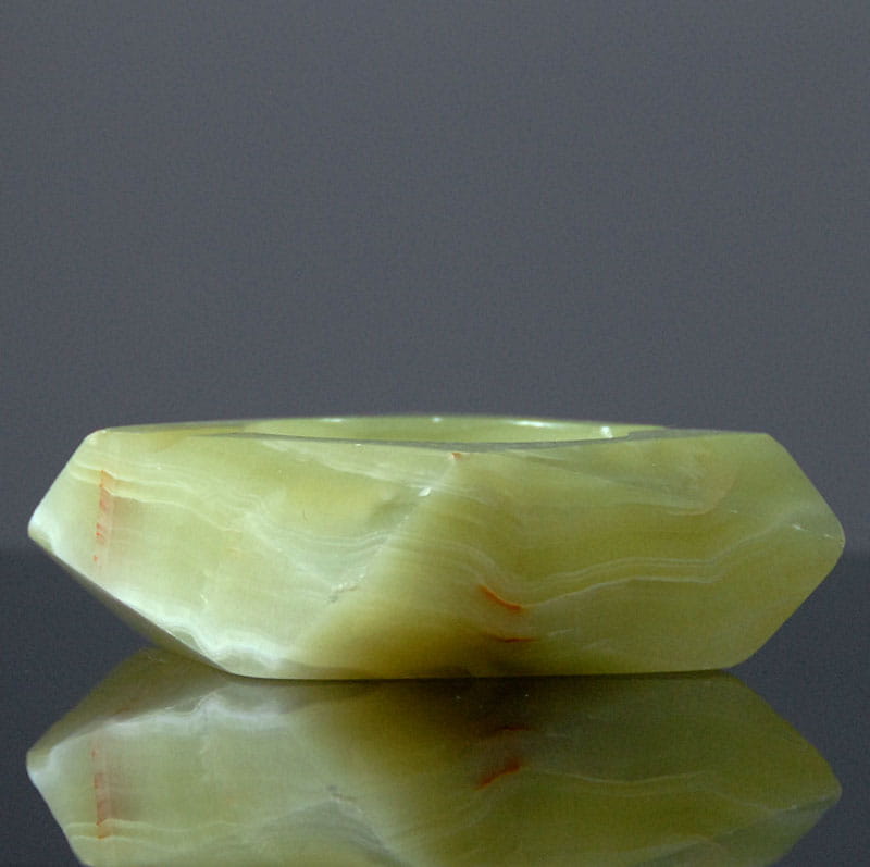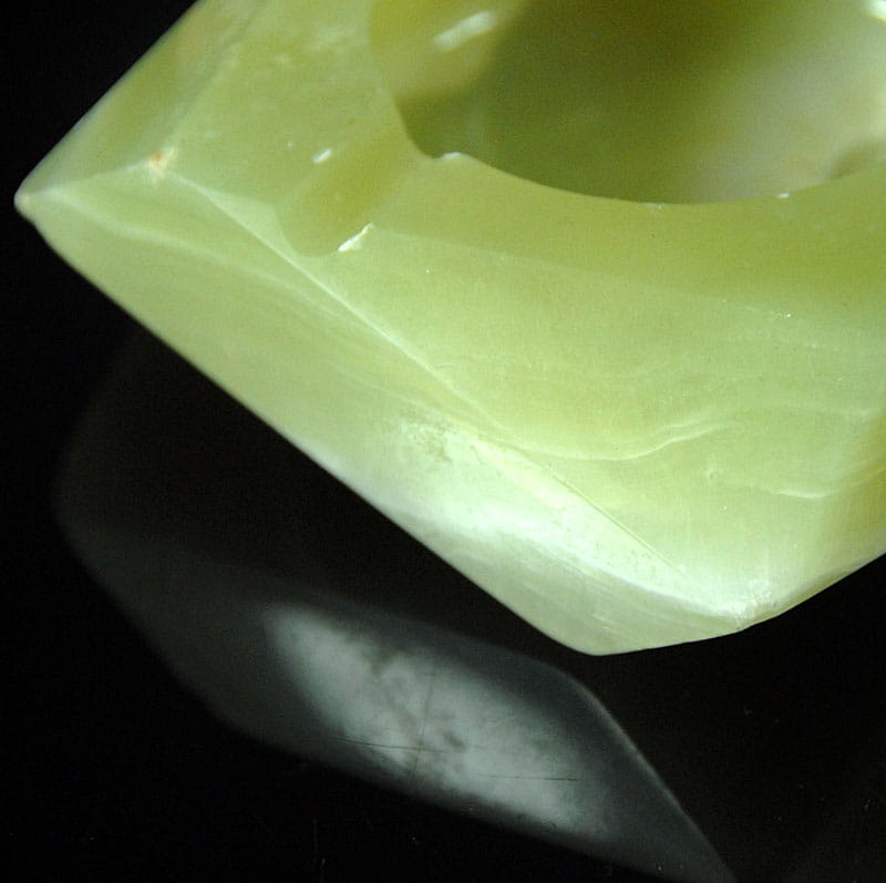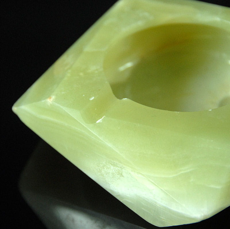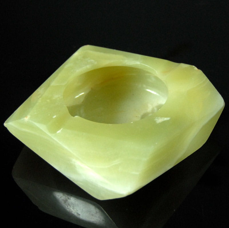 Popielnica marmurowa pochodząca z Włoch. Lata siedemdziesiąte XX wieku. Wymiary: 11 x 10 cm. Wysokość: ok. 4 cm.