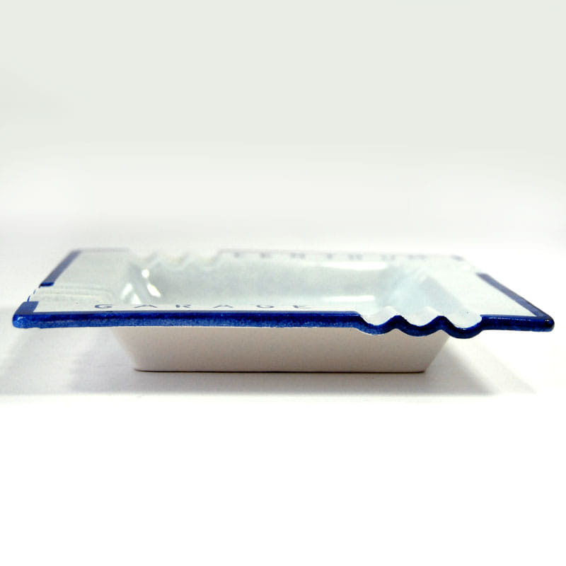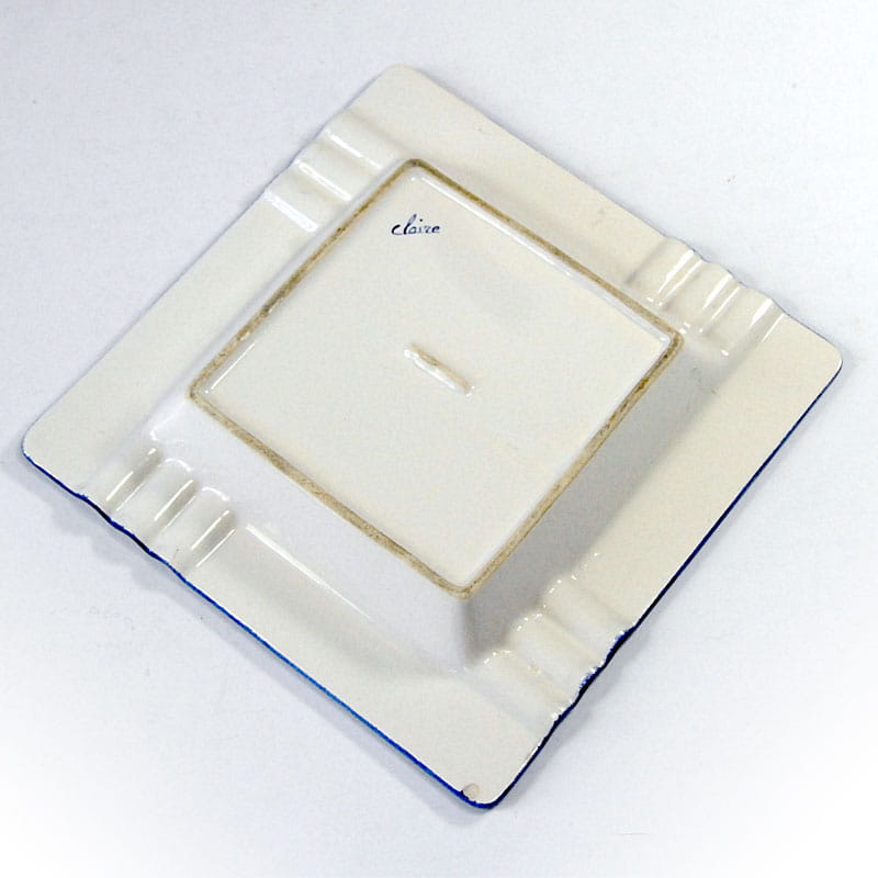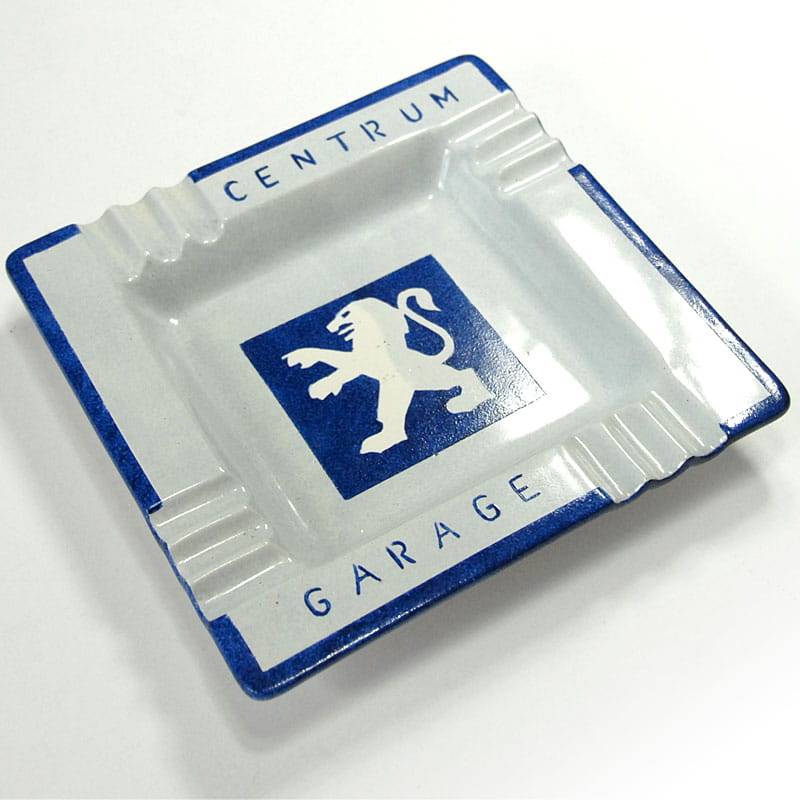 Duża, ceramiczna popielnica reklamowa pochodząca z lat osiemdziesiątych XX wieku. Sygnowana. Zachowana w bardzo dobrym stanie. Wymiary: 20 x 20 x 3 cm.