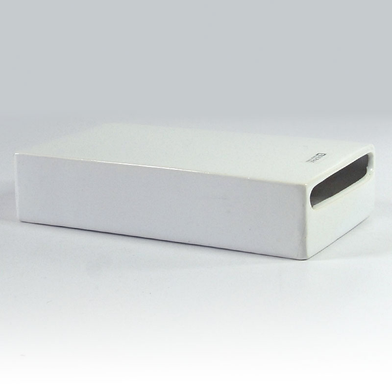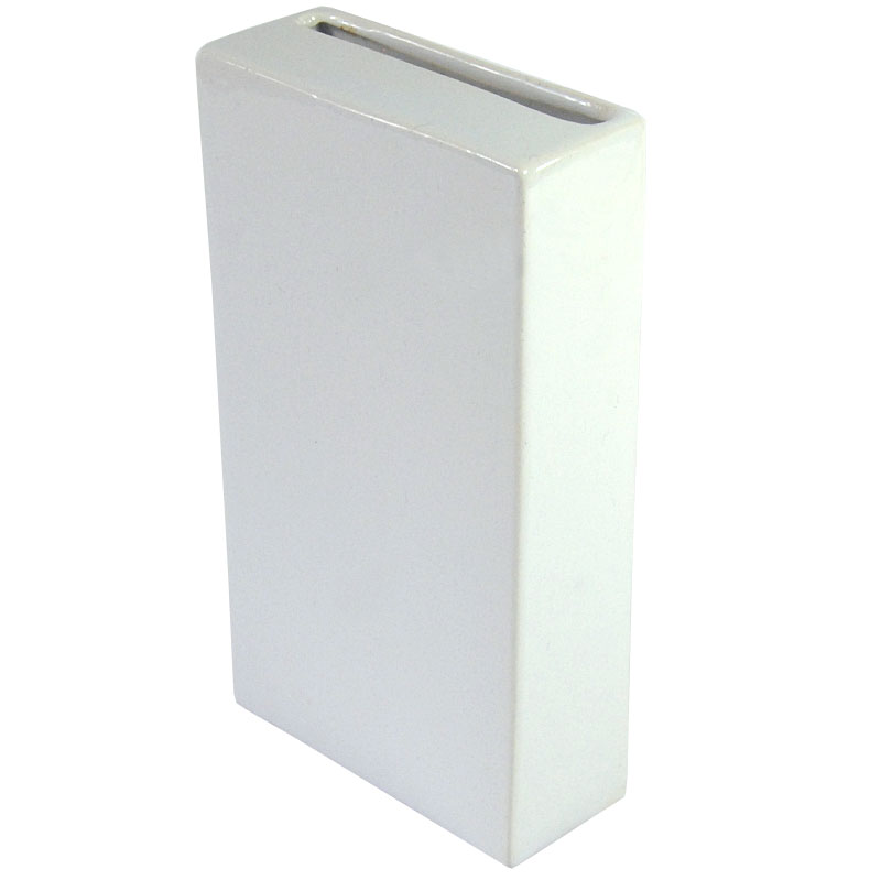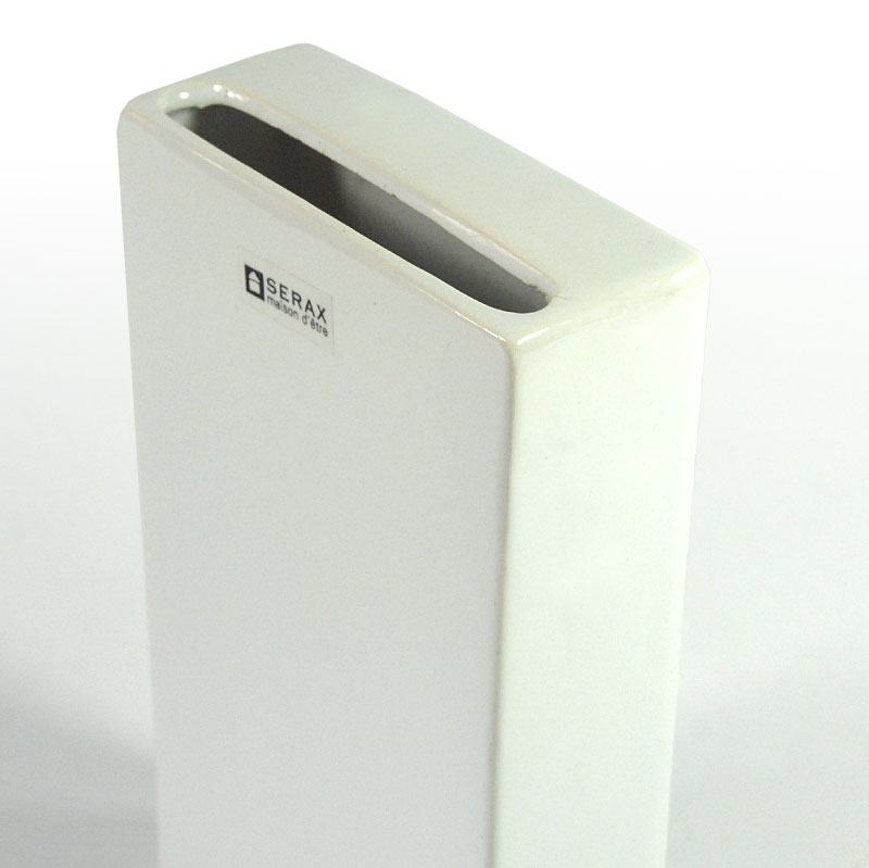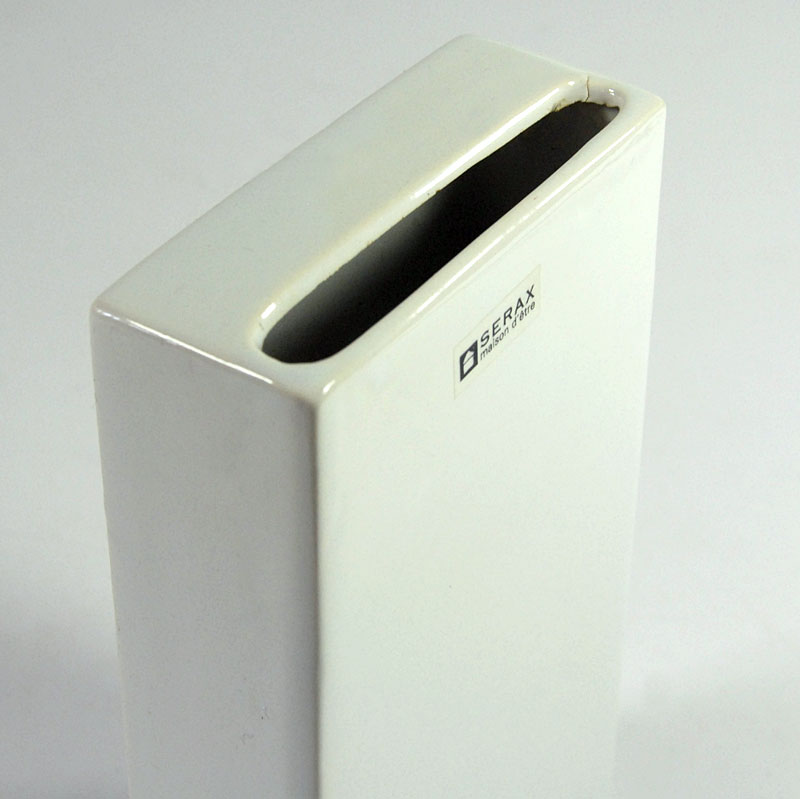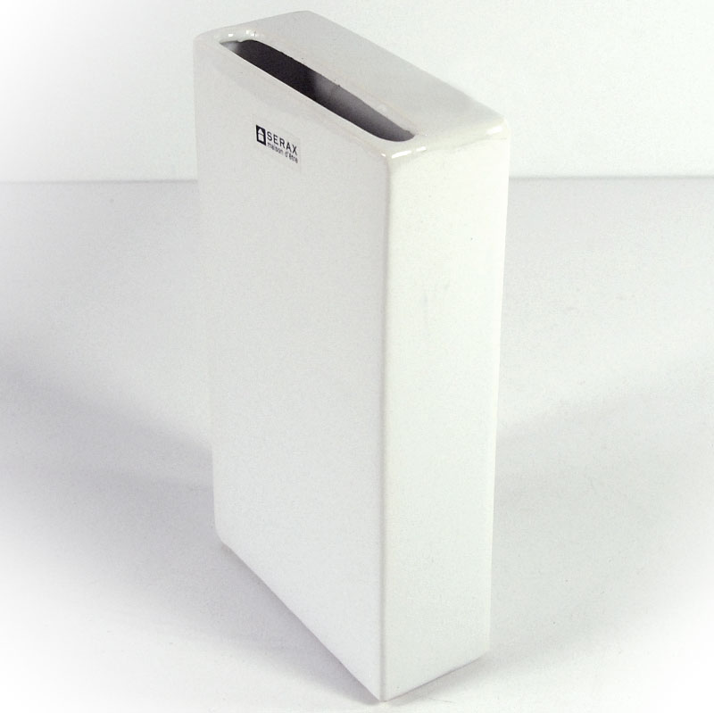 Postmodernistyczny wazon zrobiony z ceramiki, szkliwiony w kolorze białym. Pochodzi z Belgii z lat dziewięćdziesiątych XX wieku. . Zachowany jest w bardzo dobrym stanie. Wymiary: 18 x 10 x 4 cm.