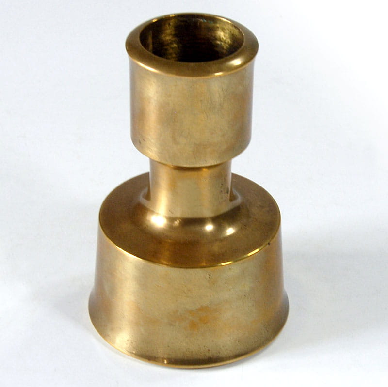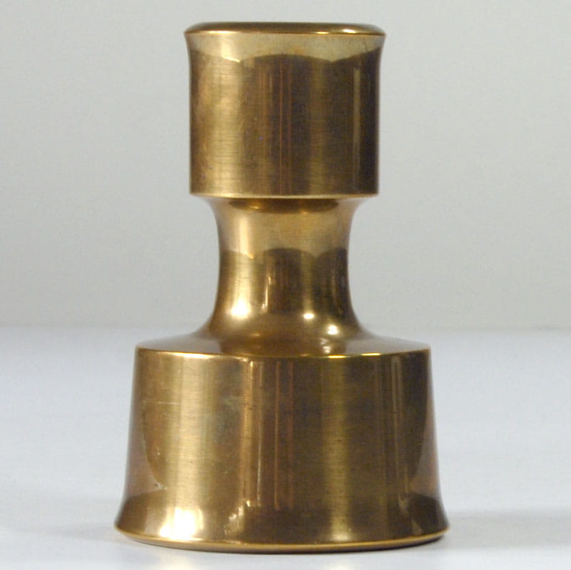 Piękne, bardzo dekoracyjne świeczniki zrobiony z lanego mosiądzu. Zaprojektowany przez Jensa Haralda Quistgaarda dla firmy Dansk. Sygnowany. Wyprodukowany w Finlandii. Oryginalny przedmiot vintage pochodzący z lat pięćdziesiątych XX wieku. Bardzo dobry stan zachowania, oryginalna patyna. Przedmiot nie był polerowany. Wysokość: 11 cm. Średnica dołu: 7 cm. Średnica góry: 4,5 cm.