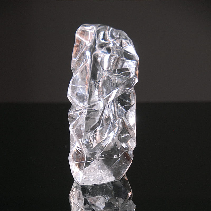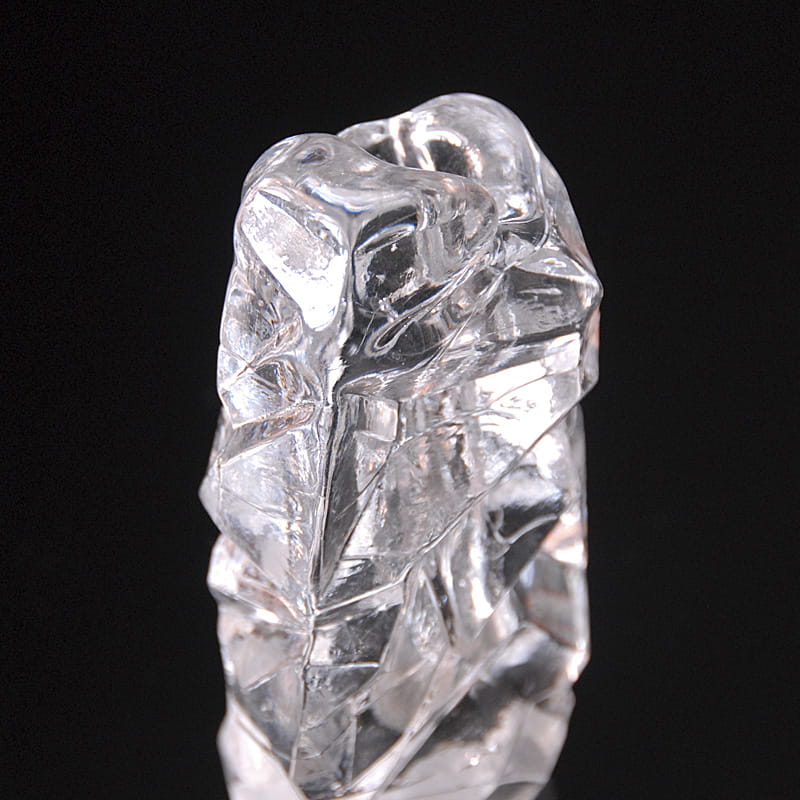Skandynawski świecznik/wazon/przycisk do papieru ze szkła prasowanego przypominającego bryłę lodu. Przedmiot oryginalny vintage z lat siedemdziesiątych XX wieku. Wysokość: ok. 15 cm. Wymiary podstawy: ok. 8x5 cm.