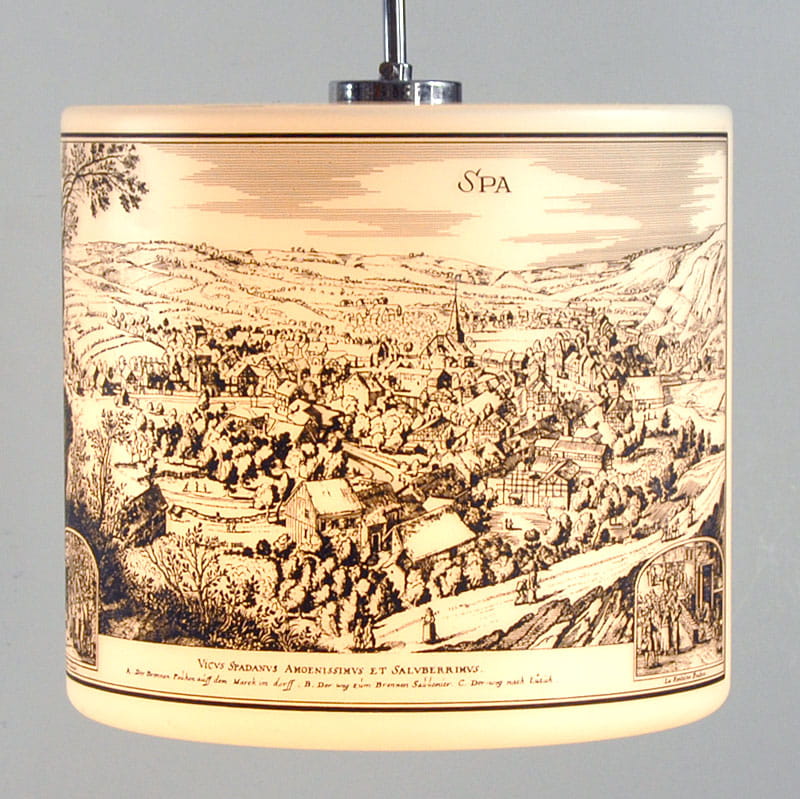 Szklana lampa z widokiem miasta, Belgia, lata 70