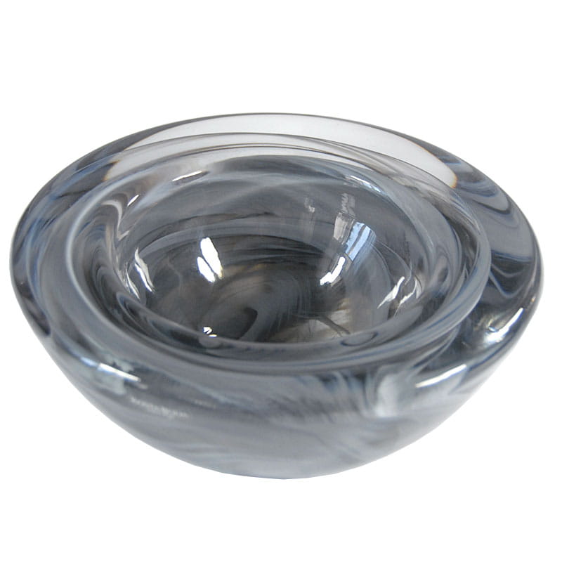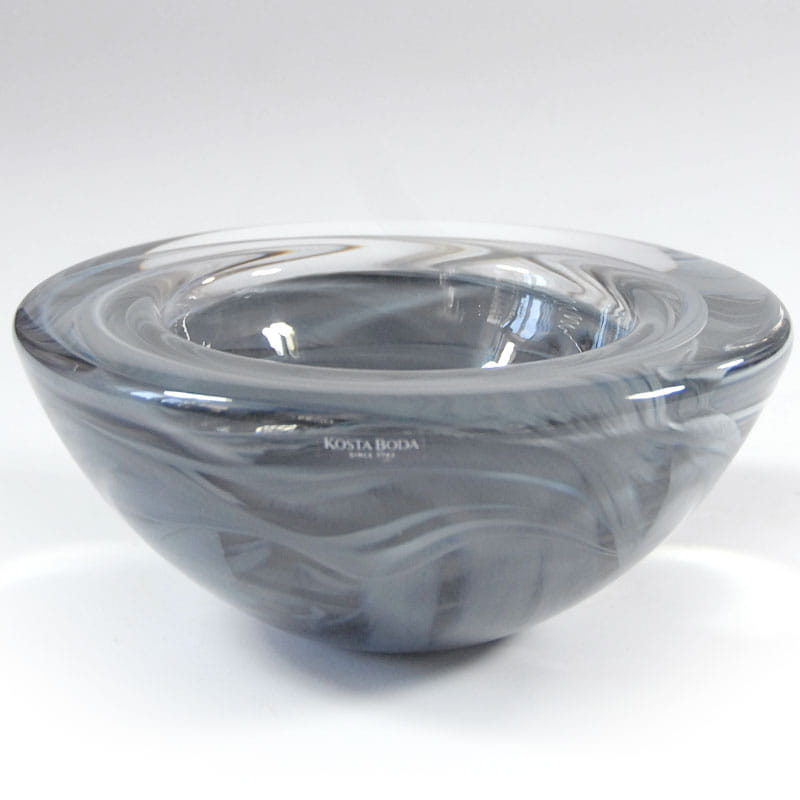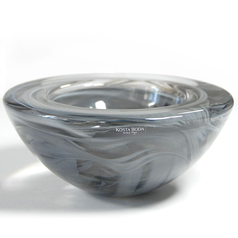 Bardzo dekoracyjna, ciężka szklana misa zaprojektowana przez Anna Ehrner a wyprodukowana przez szwedzką firmę Kosta Boda. Szkło formowane ręcznie z dekoracyjnym mieszaniem koloru. Sygnowana. Średnica: 17,5 cm. Wysokość: 8,5 cm.