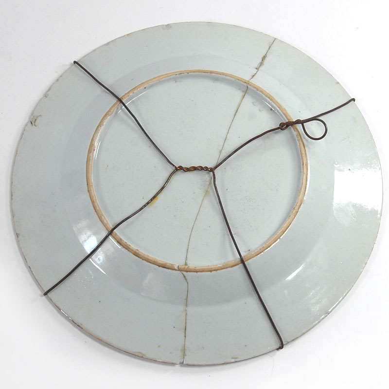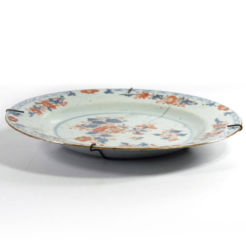 Dekoracyjny talerz Kangxi Yongzheng zrobiony z porcelany i w dekorowany ręczną malaturą. Pochodzi z Chin z czasów cesarza Qing z dynastii Qianlong (1735-1796). Talerz jest klejony. Średnica: 23,5 cm. Wysokość: 3 cm.