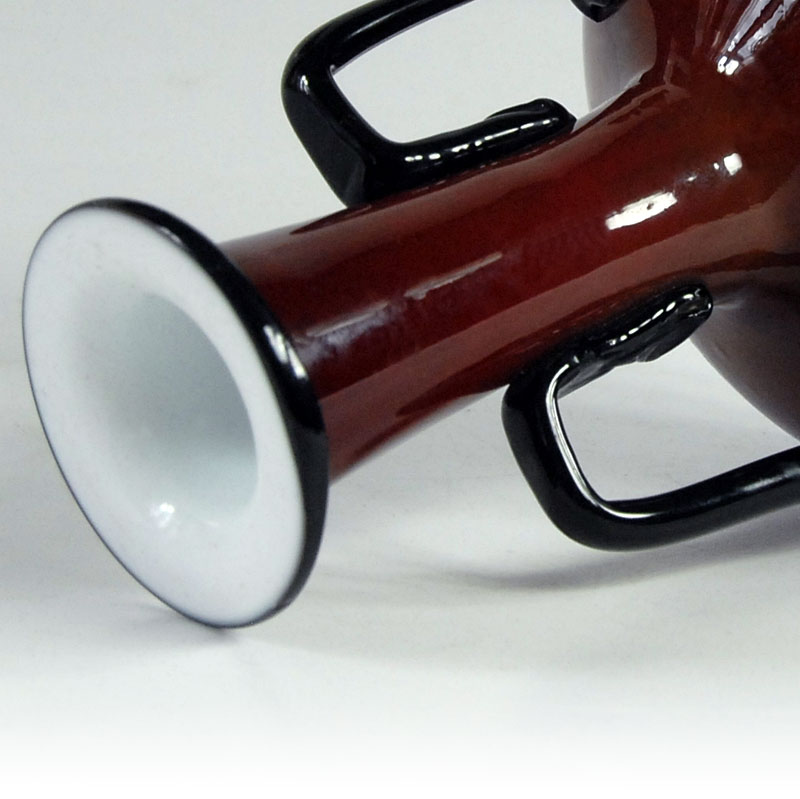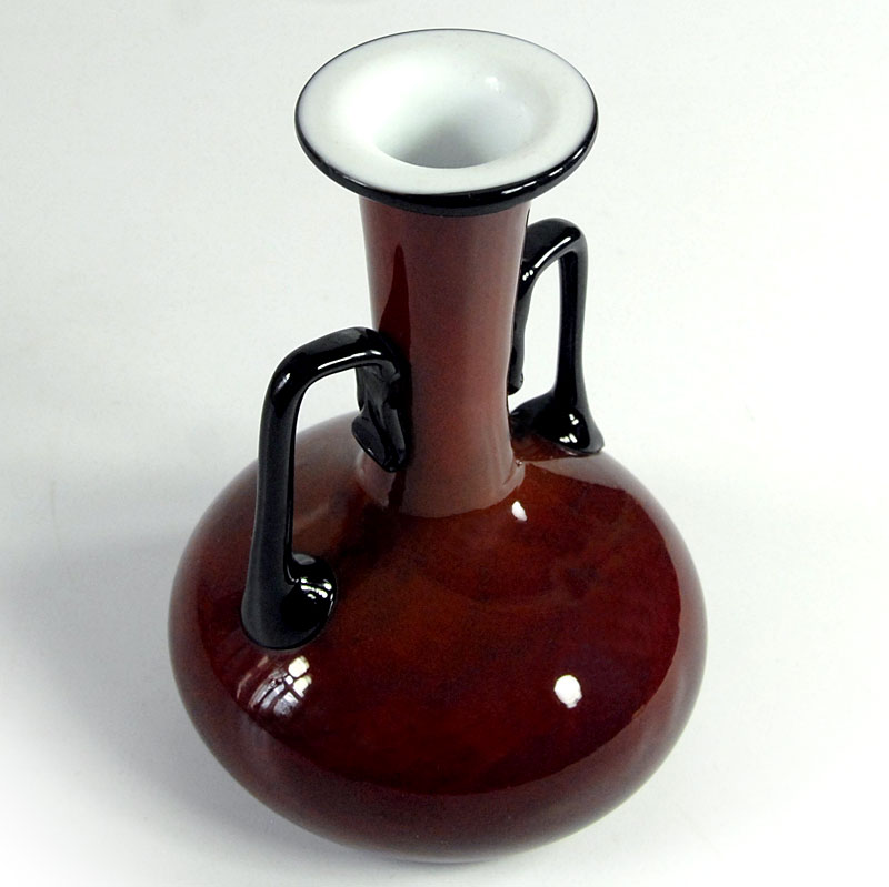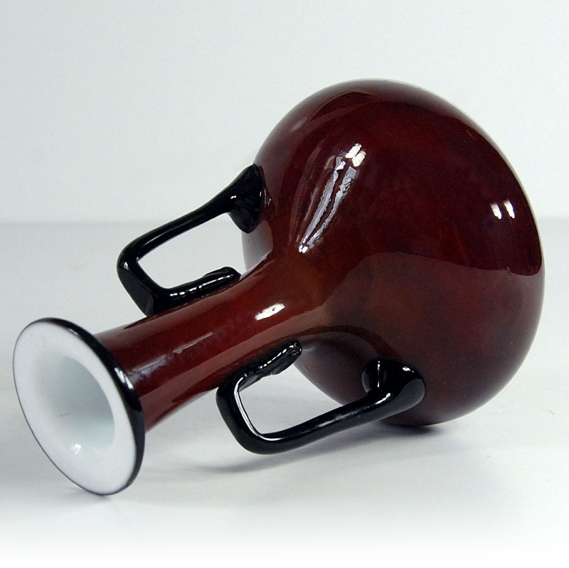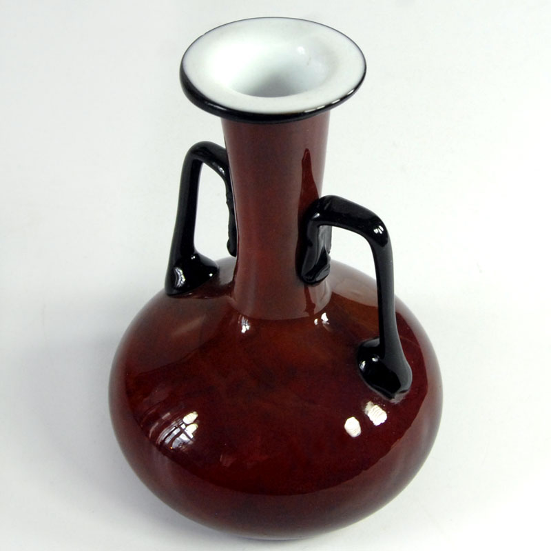 Bardzo dekoracyjny flakon ręcznie zrobiony z kolorowego szkła warstwowego. Zaprojektowany przez Michaela Povolnego. Pochodzi z wytwórni Loetz w Czechosłowacji. Pochodzi z lat dwudziestych/trzydziestych XX wieku. Zachowany jest w bardzo dobrym stanie. Wysokość: 14 cm. Średnica: 10 cm.
