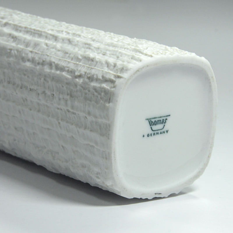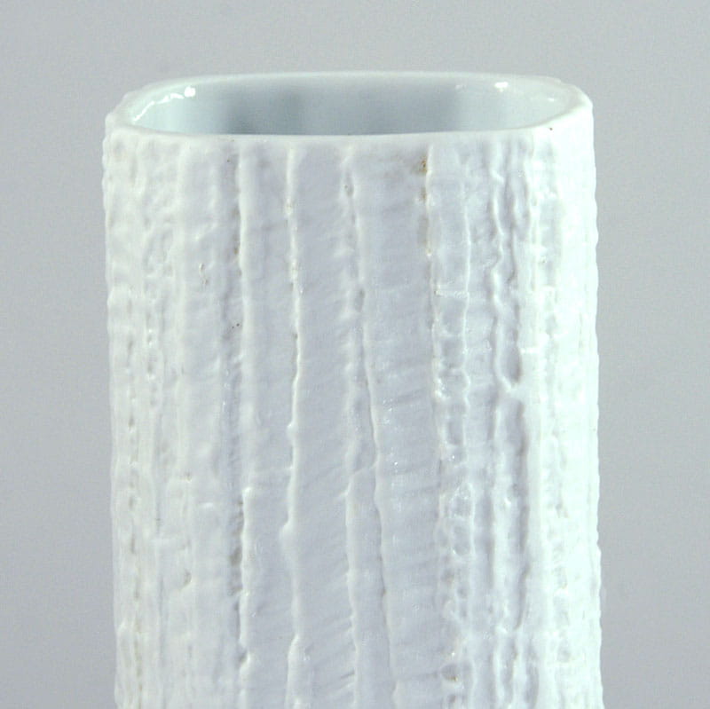 Bardzo wysoki wazon Arcta zrobiony z porcelany biskwitowej z efektowną brutalistyczną fakturą. Zaprojektowany został przez Richarda Scharrera. Wyprodukowana przez firmę Rosenthal w linii Thomas w latach sześćdziesiątych XX w. Sygnowany. Oryginalny przedmiot vintage. Bardzo dobry stan zachowania. Wysokośc: 36 cm. Wymiary podstawy: 7 x 7 cm.